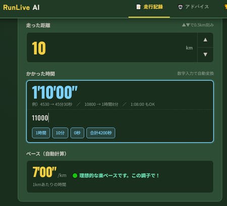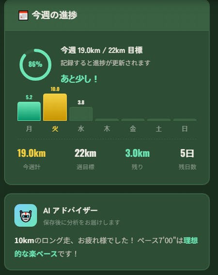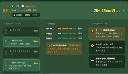 #自己の走力と目標の大会カテゴリに応じた 「練習メニュー」を生成