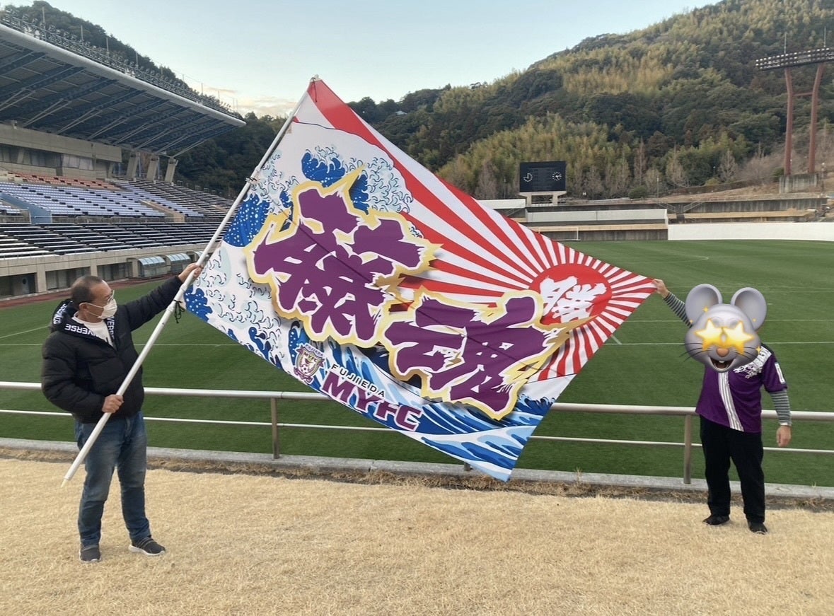 [J2藤枝MYFCサポーター大旗提供贈呈式写真]