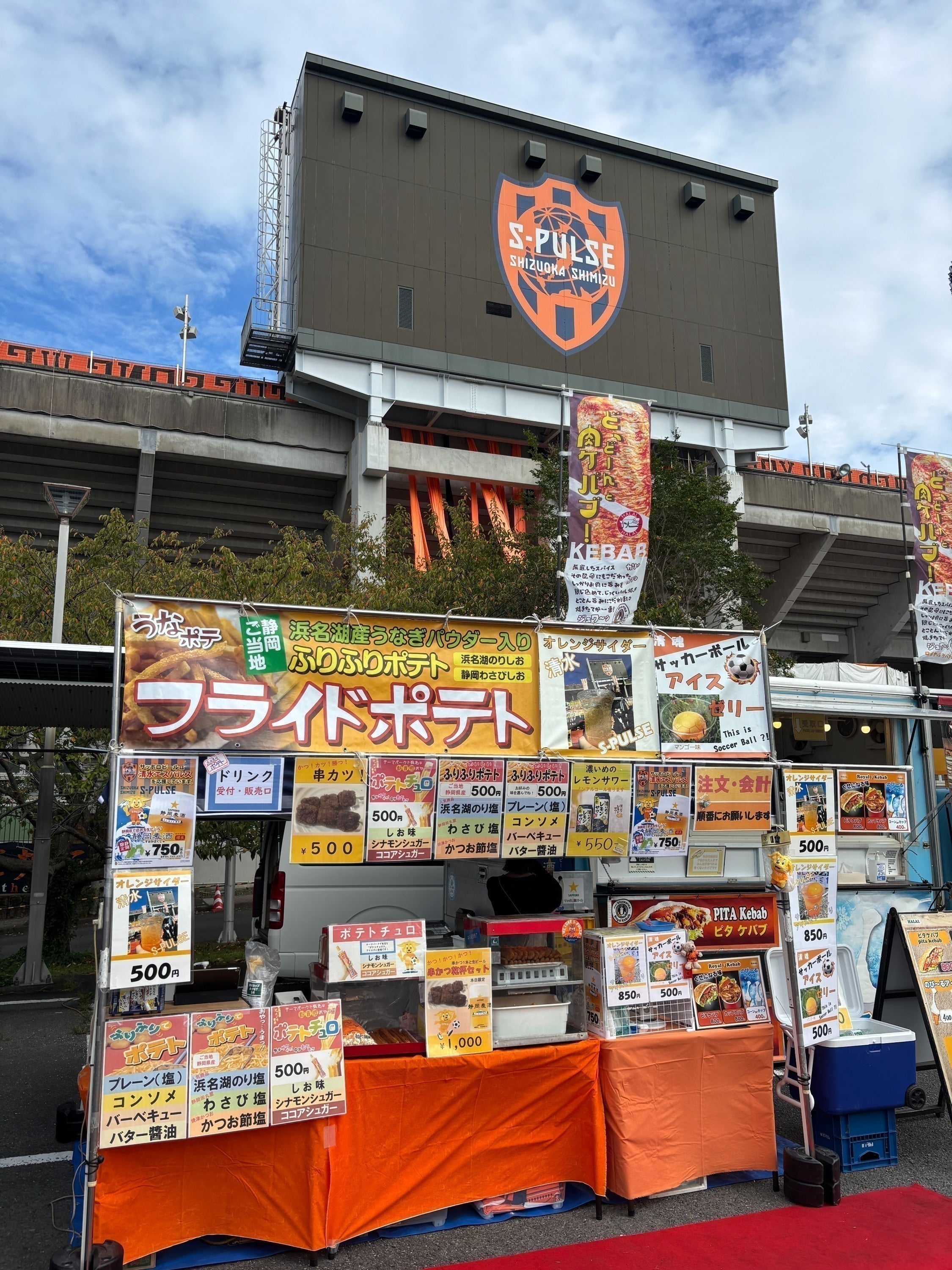 店舗メニューは「ふじのくに静岡ケータリング協同組合」監修のもとにて、藤枝MYFC・清水エスパルスの各スタジアムで販売している商品の提供をさせていただきます。