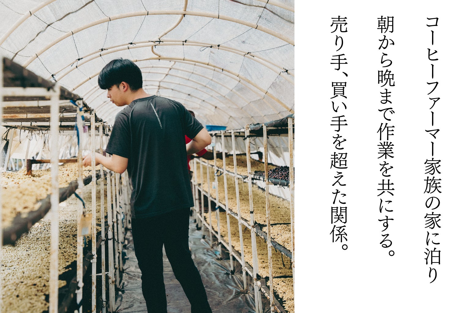 日の当たらない場所で、狂気的なくらい時間を積み上げた人たちがいる。その集積が、あの一杯の香りになる。僕たちがCOFFEE HOUSEでやりたいのも、同じ構造です。