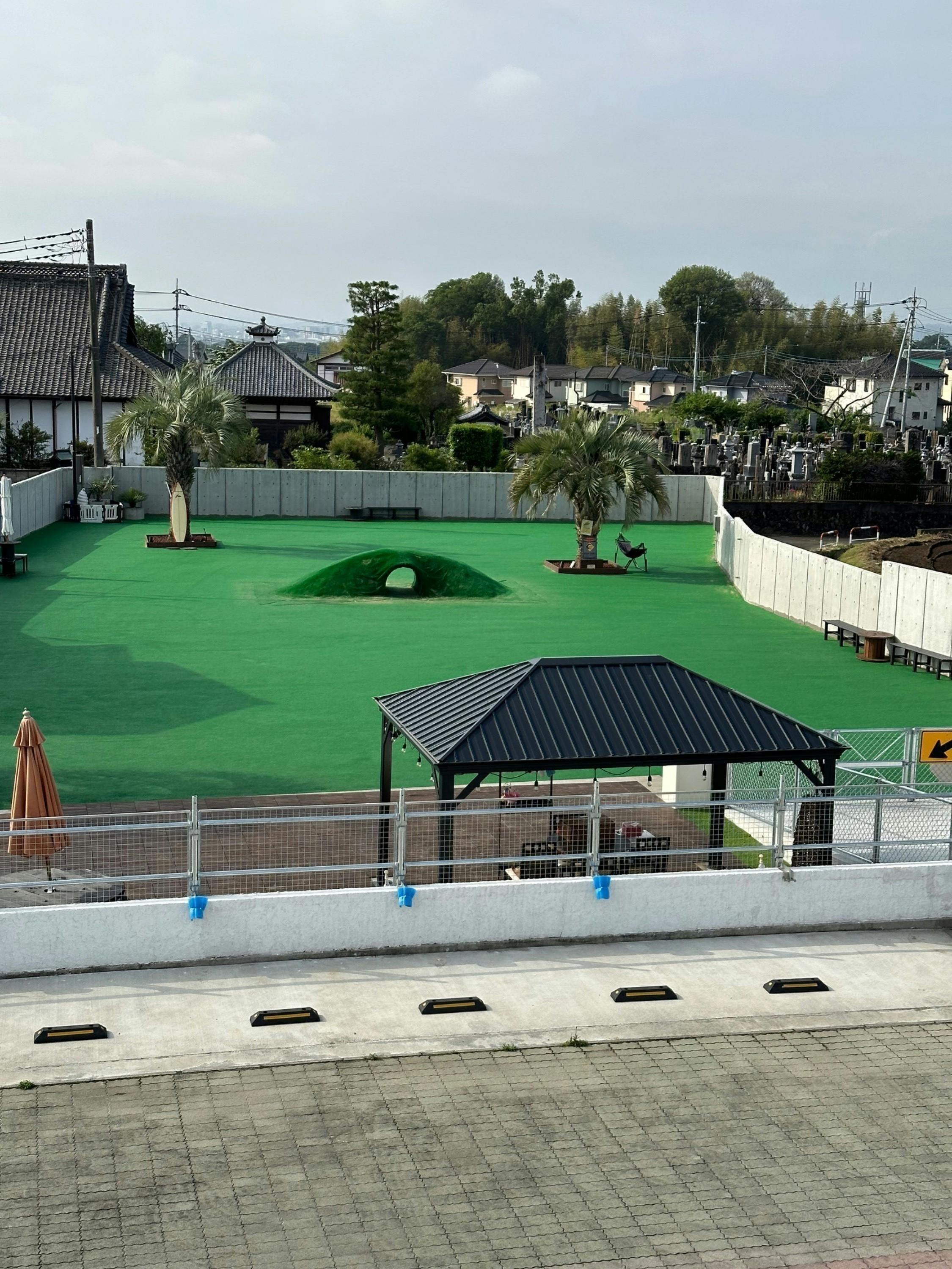 人工芝は虫などの心配もなく、世界最高水準の芝を使用しております。