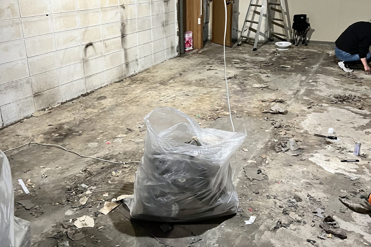 次は、床に貼られた謎のシート剥がし。