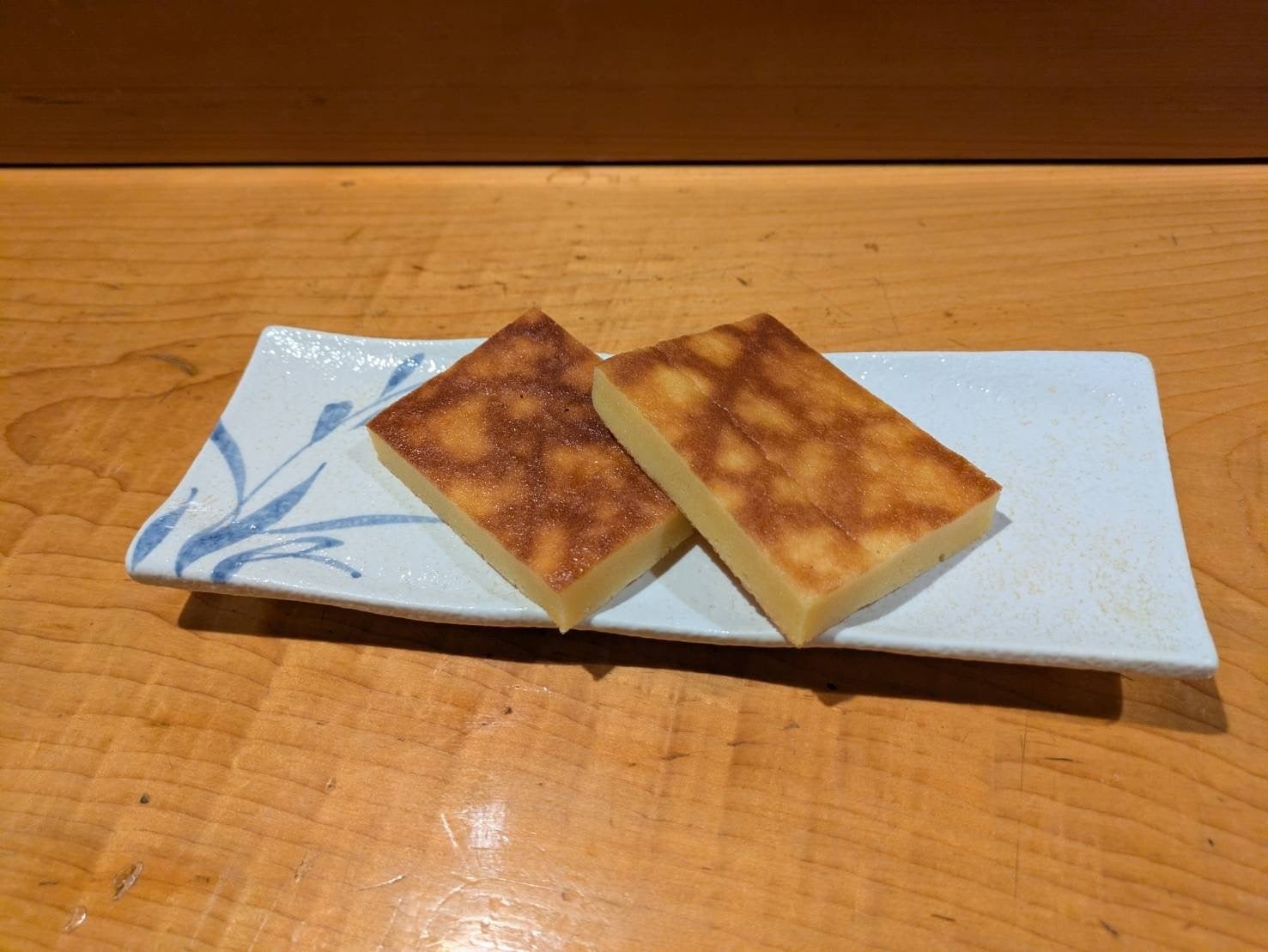 そして、祐鮨の伝統である卵焼き。大量の卵と魚のすりを使い、分離させないように少量ずつ丁寧に作ります。この味は、初代から受け継いできた祐鮨の宝物です。