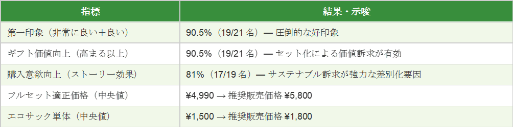 適正価格のを算出したところ推奨販売価格は「トラベルセット・エコサック」が5,800円、「エコサック単体」が1,800円と設定されました 。