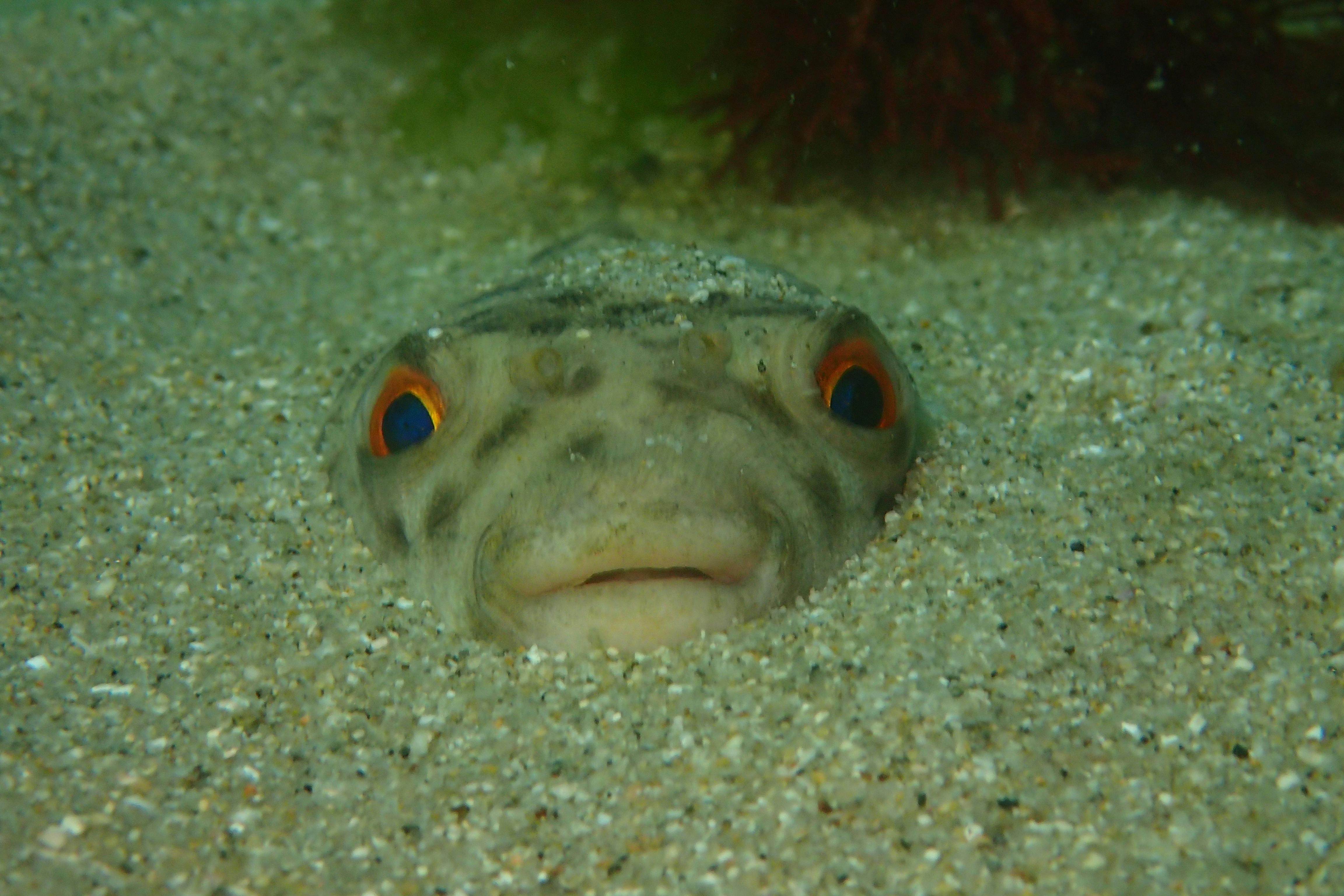 砂に隠れてるフグ。すごいこっち見てる。笑 怖かったかなー。