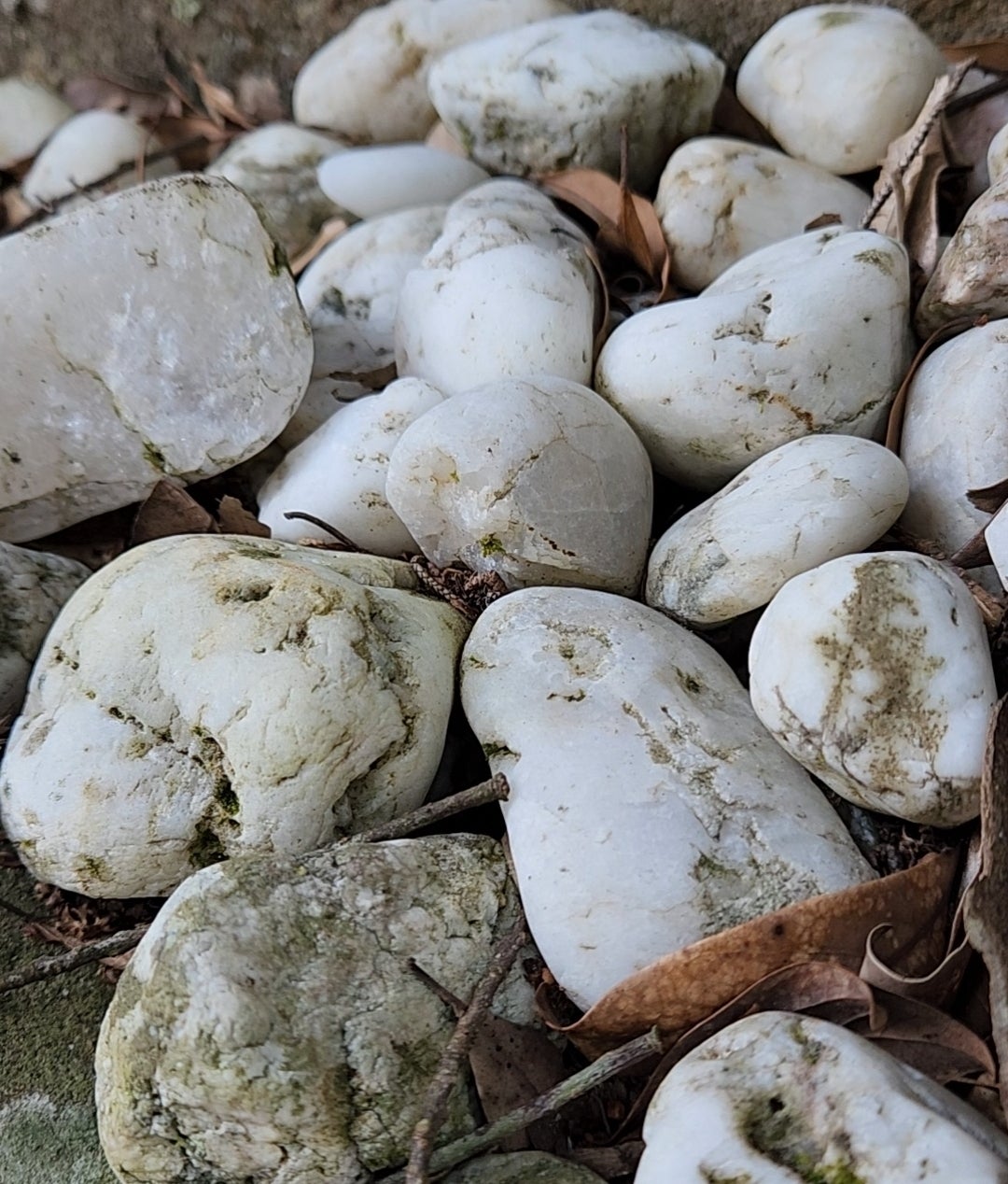 境内には多数の小さな白い石があり、地面を掘っても同様の石が出てくるという。