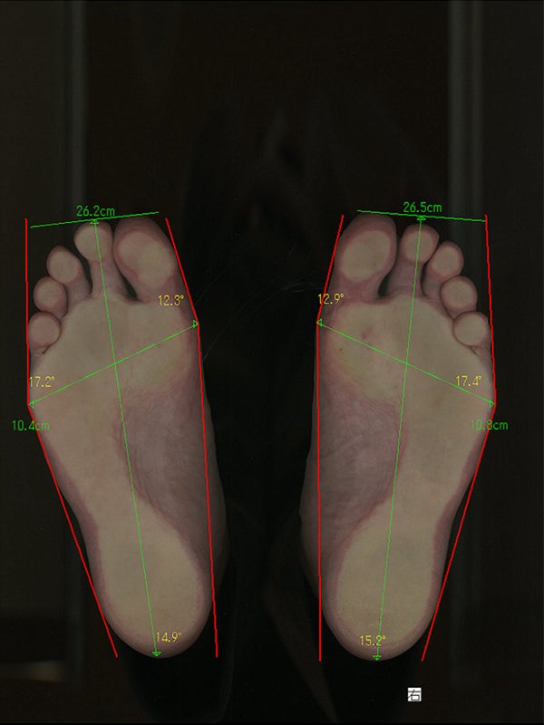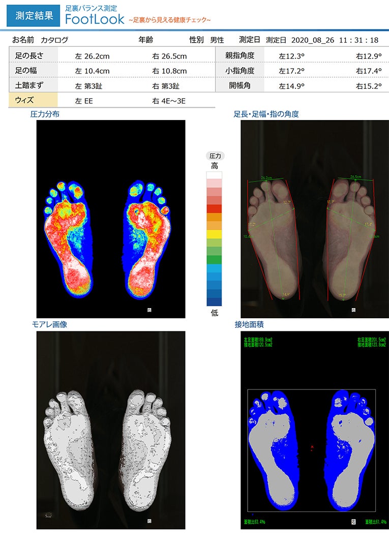 「数値化と画像化」することで外反母趾角度、内反小指角度、足の長さ、足の横幅、開帳角、接地比率、土踏まずの発達度、靴ウィズ(A~G)が具体的に知ることができます。