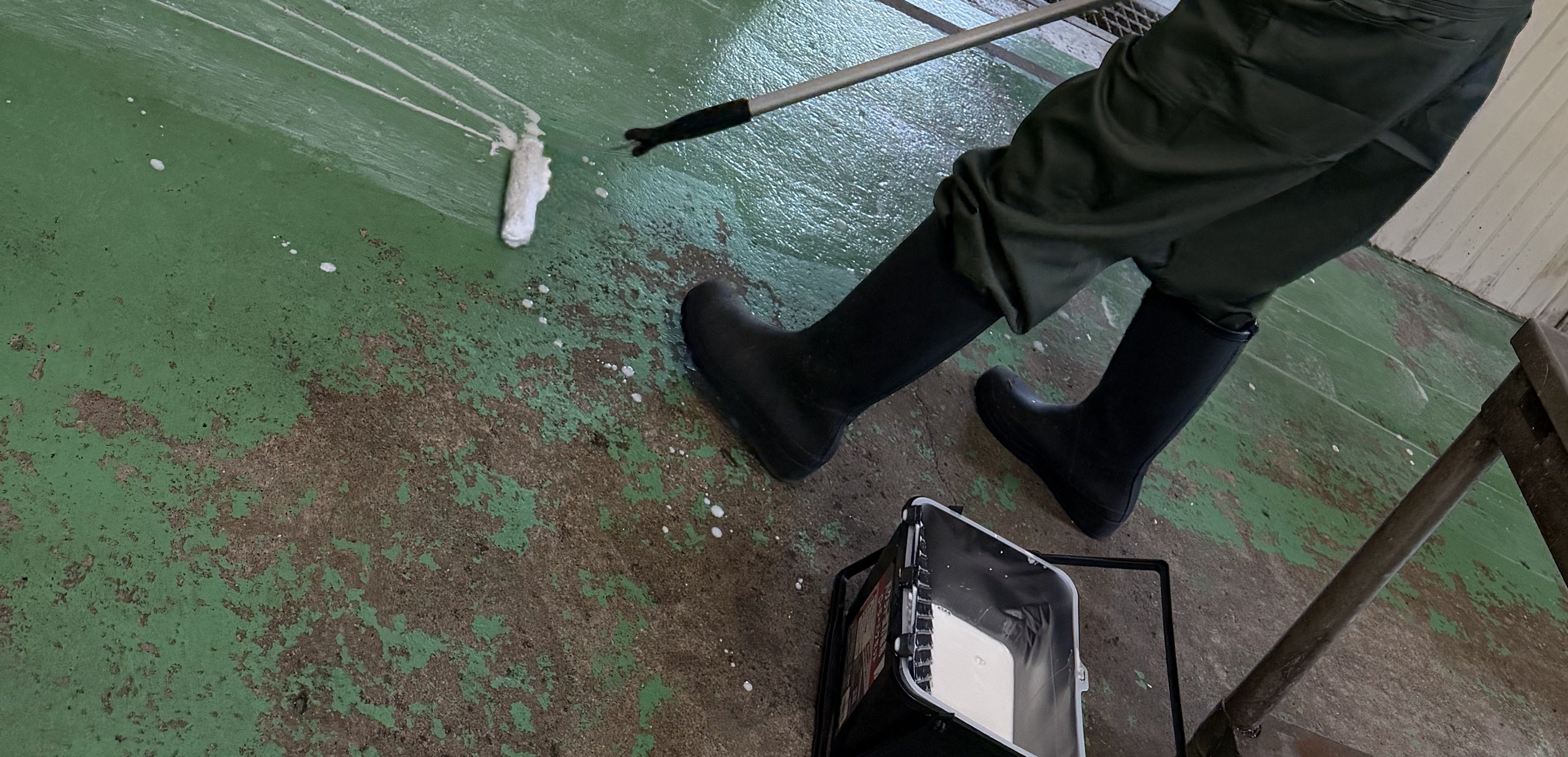 例1)床の塗装は1度塗り→2度塗りでより耐久面や衛生面の強化に