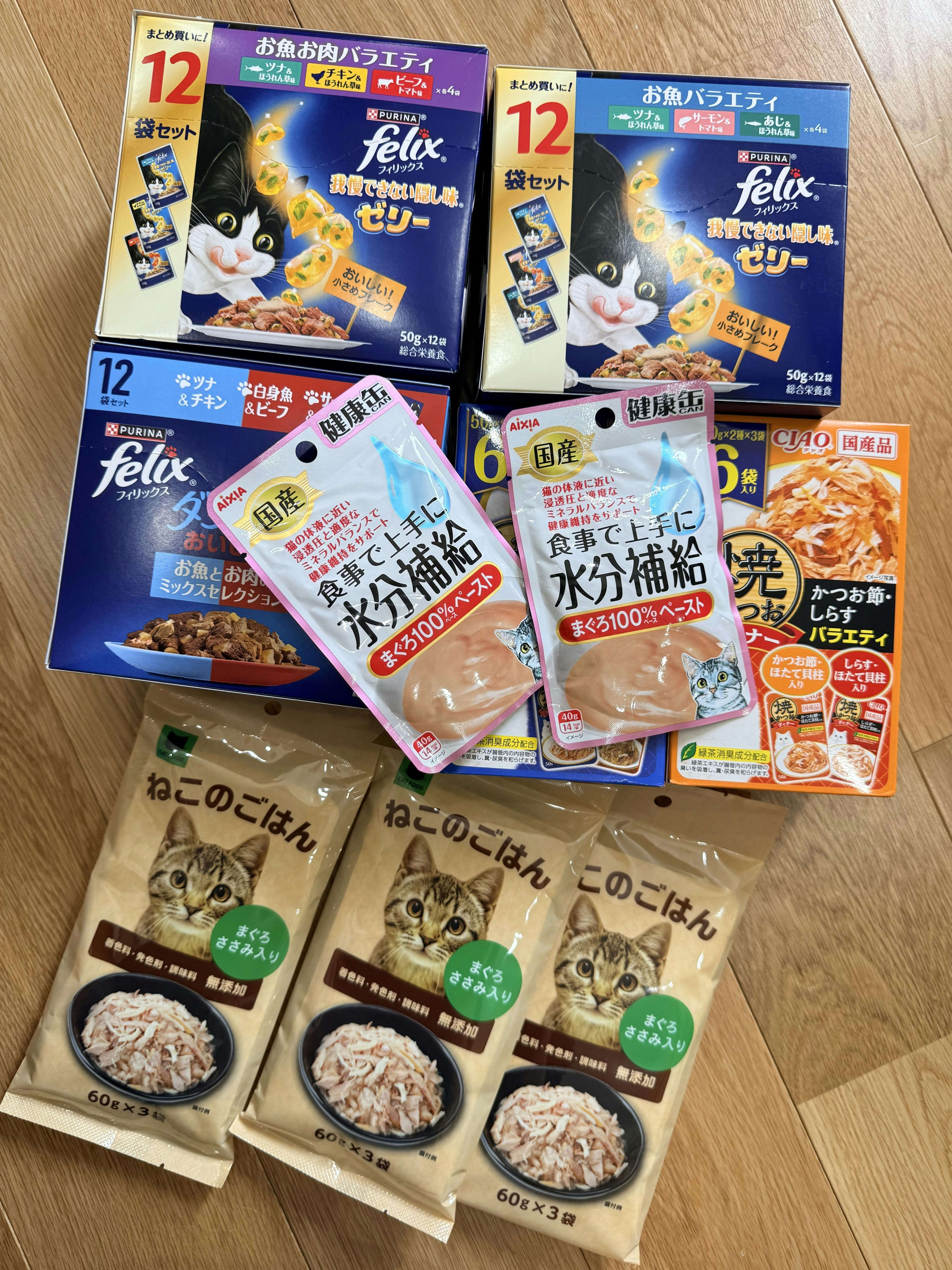 現在、かりかりごはんやウェットフードが不足しており、ストックがなくなったウェットフードを今日はやむを得ず自費で購入してきました。
