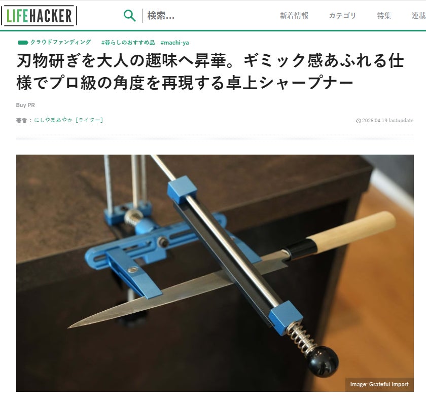 また、LIFE HACKERさまにも取り上げていただき、「刃物研ぎを大人の趣味へ昇華させる」という刃之匠のコンセプトを丁寧にご紹介いただきました。より多くの方に知っていただける機会をいただいたことに、深く感謝しております。