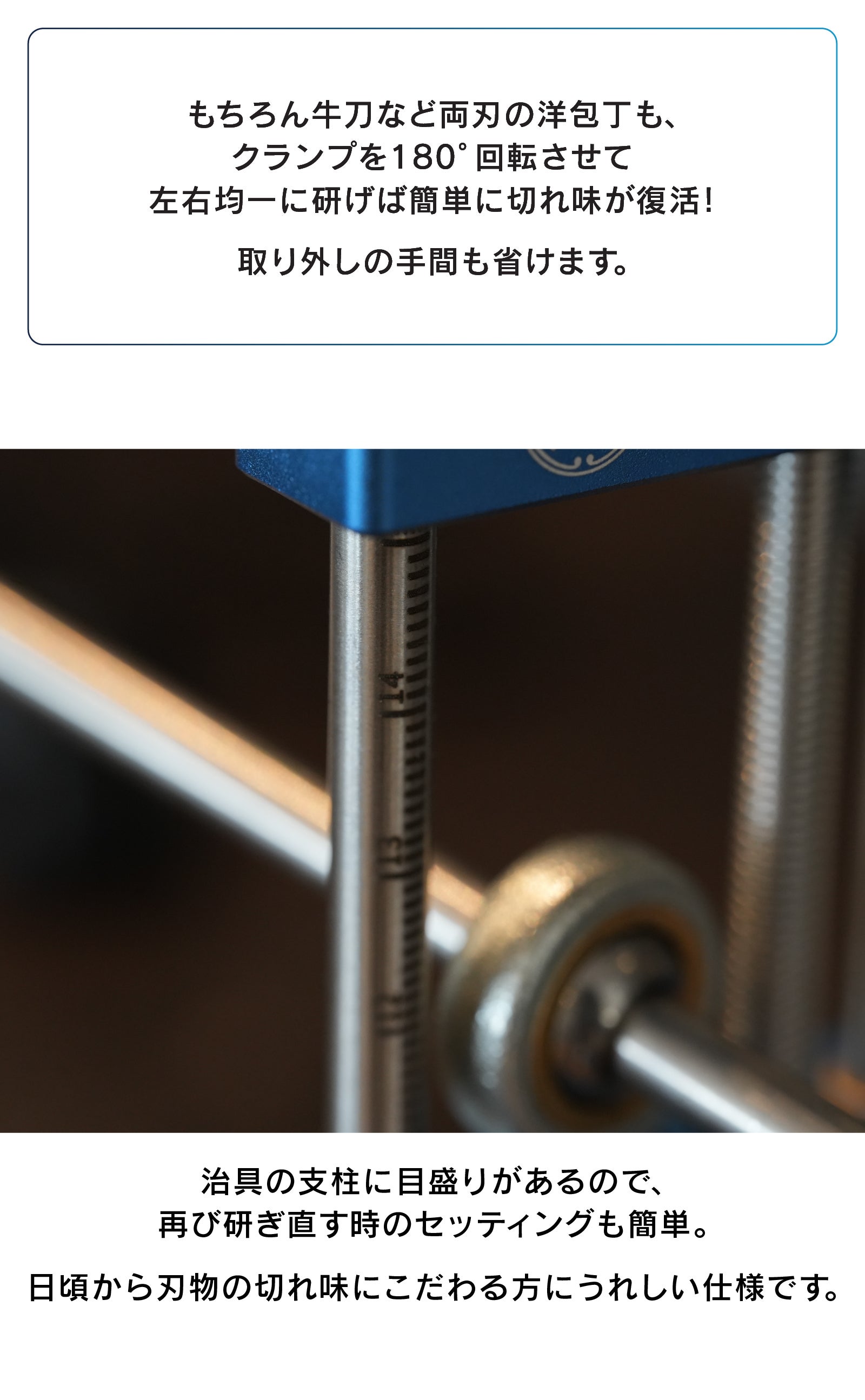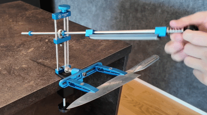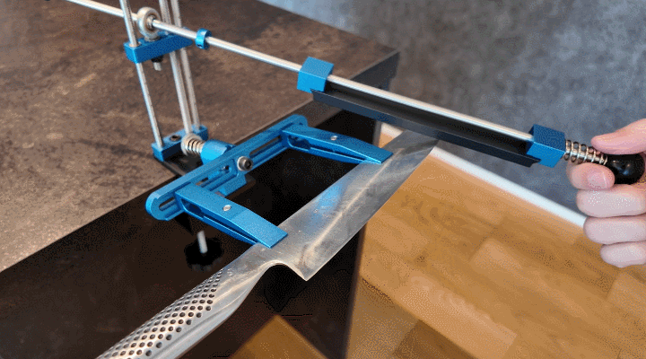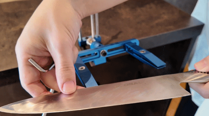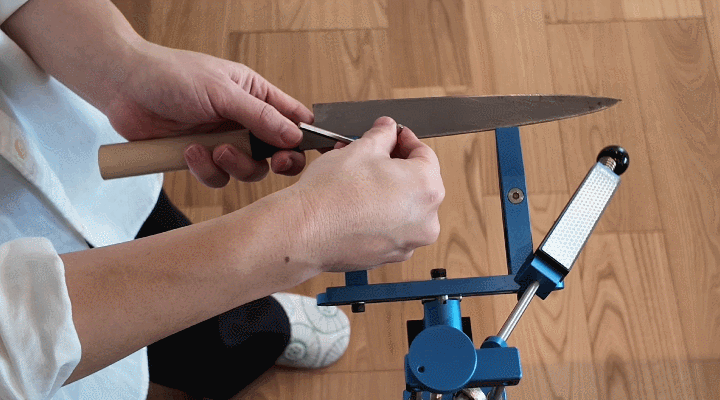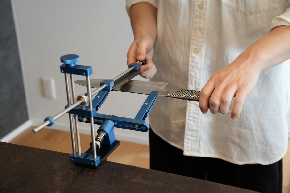 角度が固定されているから迷わない。砥石を滑らせるだけで、刃先が整っていく感覚が手に伝わってきます。