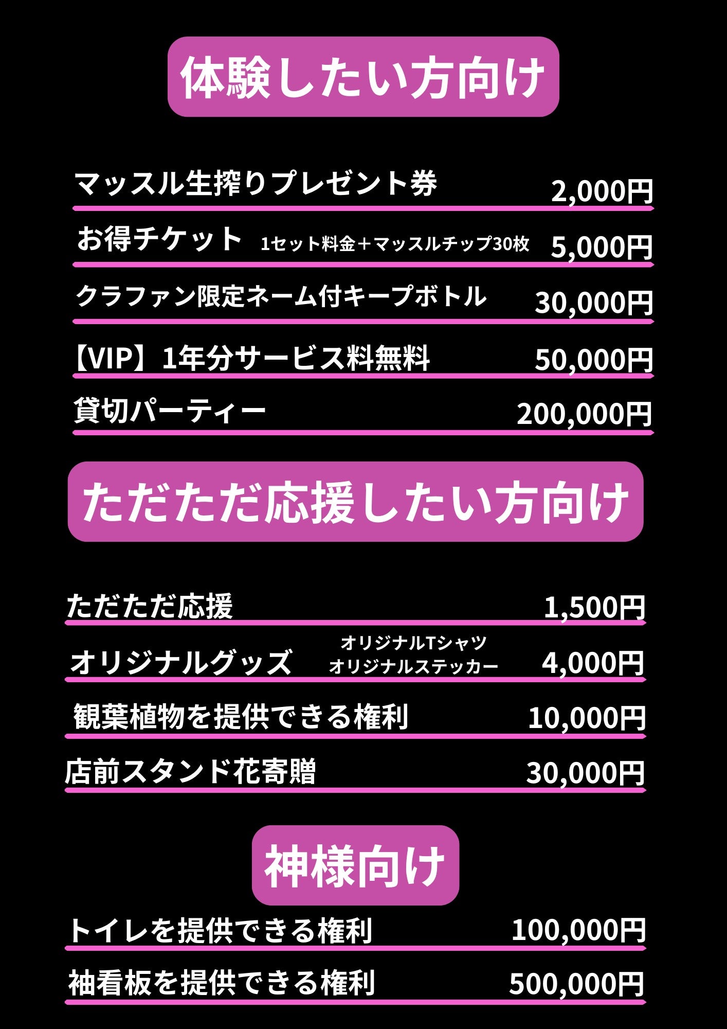 ※支援頂いた資金は全て営業に充てさせて頂き、リターンはOPEN以降から利用可能