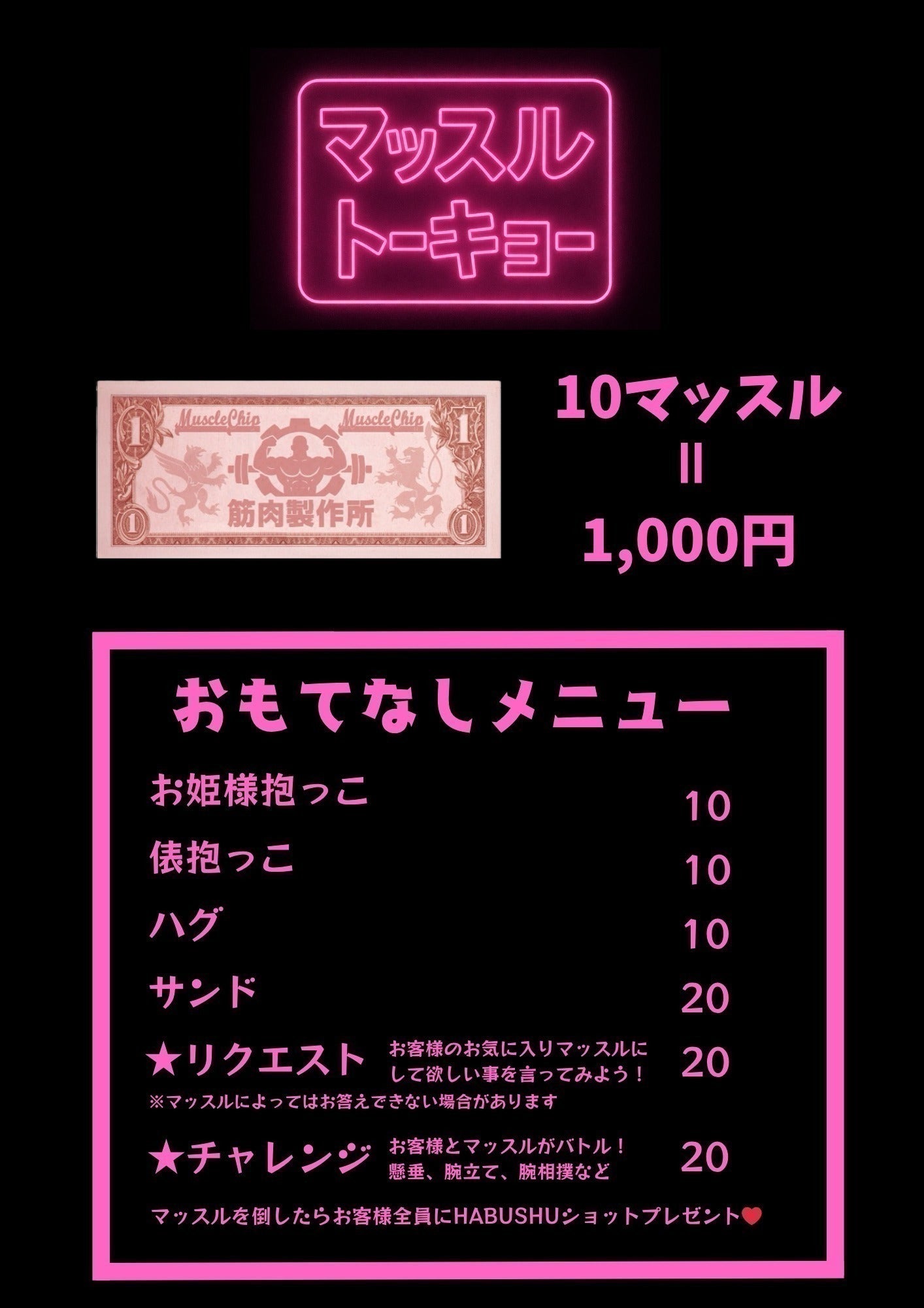 マッスルトーキョーはただのマッスルバーではありません。以下の3つの武器を持ってみなさまをおもてなしいたします!