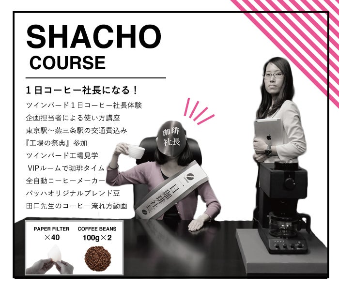 新潟県燕三条の工場一般開放イベント『燕三条 工場の祭典』にて“ツインバード 1日コーヒー社長”として、来場者に試飲のコーヒーを振る舞っていただきます!企画担当によるコーヒーメーカーの使い方講座からツインバードの工場見学、ツインバード本社 VIPルームでのコーヒータイム付き!