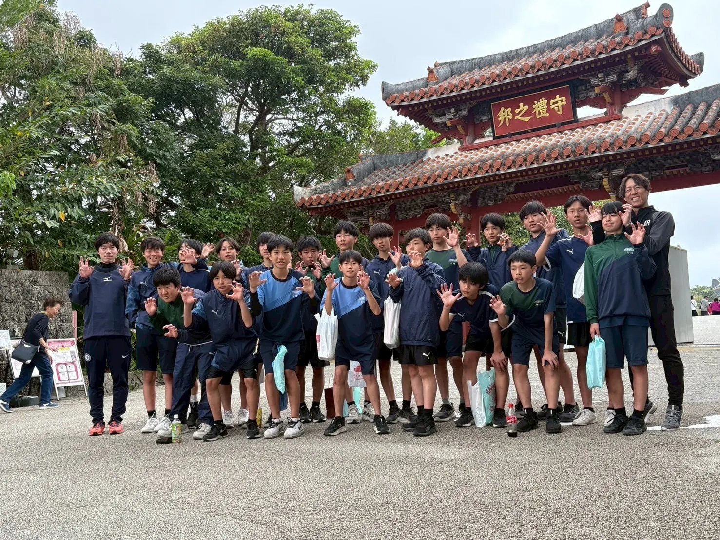 スタッフ紹介をします!この先生方コーチが居なくては大分県大会は優勝できませんでした!!杉崎先生まさに先生が居なくては城東中学サッカー部はここまで強くなっていません。常に厳しくストイックな先生、選手達より走れる現役でサッカーをされてます。走らなかった選手達はぐうの音もでません…!!研究熱心で戦術を試合を見直したり、いつも一生懸命にみんなの事を考えてくれます。4月からも顧問継続です!総体を勝ち上がれるようまた熱心なご指導よろしくお願いします。写真は沖縄首里城二千円札と同じ角度からの撮影!社会の先生なので、そこはこだわります!!