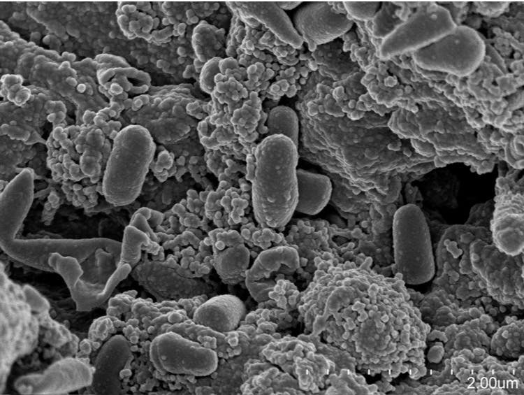 2026/02/09 14:58研究を実際に行うにあたり電子顕微鏡で粘菌アメーバに付着・内部に存在する細菌を観察しました。以下は粘菌アメーバの表面に付着した細菌を撮影したものです(赤矢印部分が細菌)。この細菌が粘菌の生存にどのような影響を及ぼしているのか非常に興味深いところです。前回の活動報告にて掲載した粘菌フローラは遺伝子のみの解析でしたが、実際に写真で細菌の存在を確認する事で研究の幅がグッと拡がると考えています。まさに百聞は一見にしかず。 もっと見る