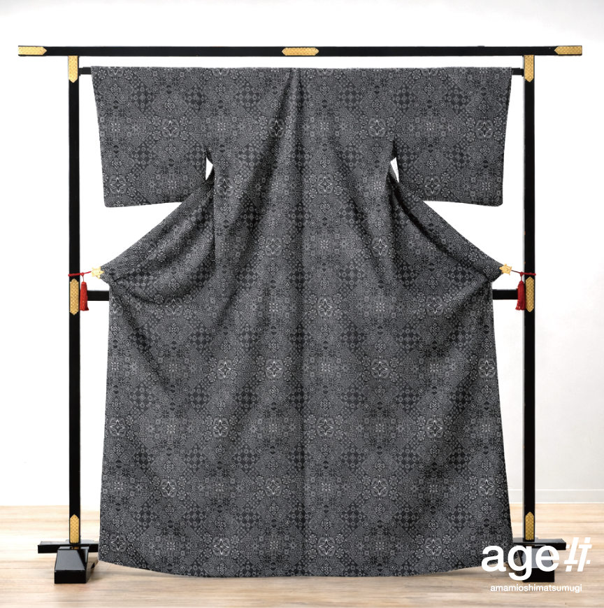 そのドットで構成された造形は、大島紬が模様を描く 絣(かすり)技法 と、驚くほど相性が良い。