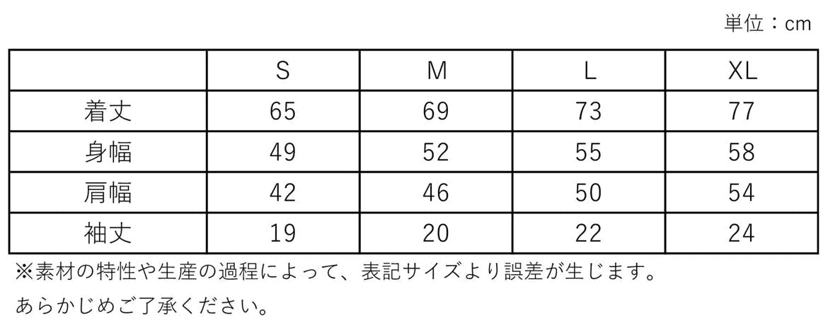 ※Tシャツサイズは下記となります。