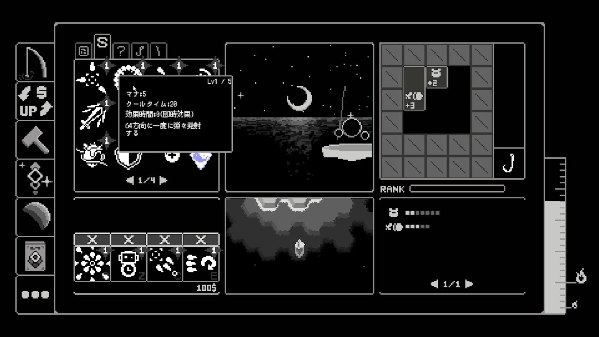 マップ上を泳ぐ魚に釣り針を投げ当てたり、
