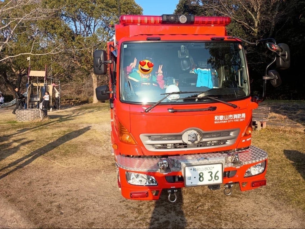 防災車が着いた瞬間公園内にいる子供達がみんな揃ってガン見していて、凄い人気者!