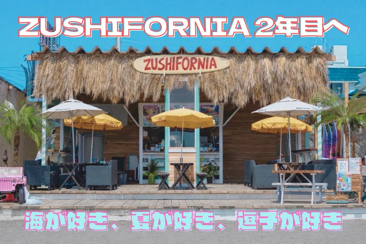 昨年「ZUSHIFORNIA」をオープンし、たくさんの方と出会い、再会し、たくさんの思い出がここにあります。海を眺めながら乾杯、笑って、語り合うそんな当たり前のようで大切な時間をいつまでも続けたいと思い2年目のオープンを決めました。