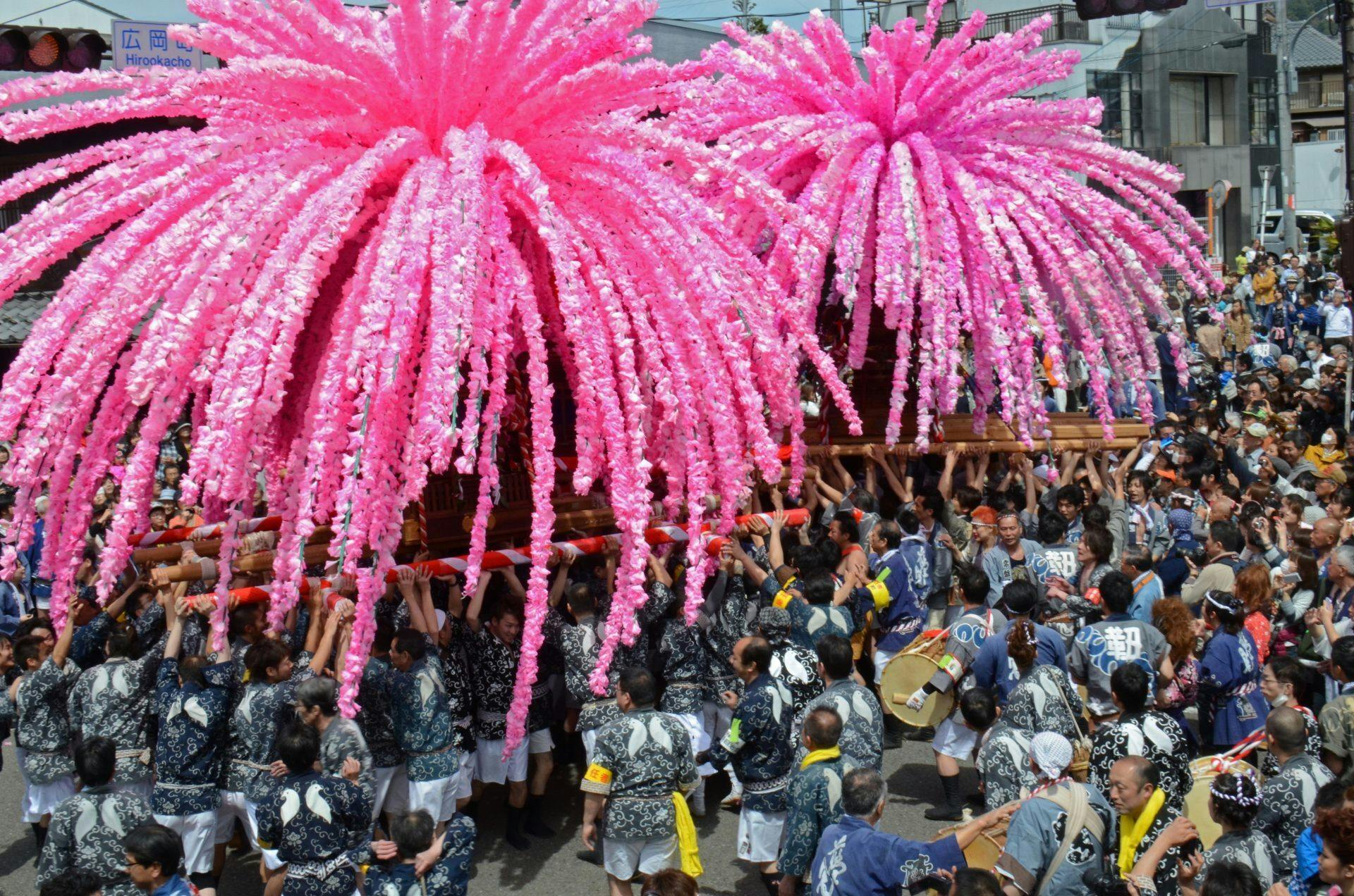 花みこしのクライマックスである「総練り」の様子(春)