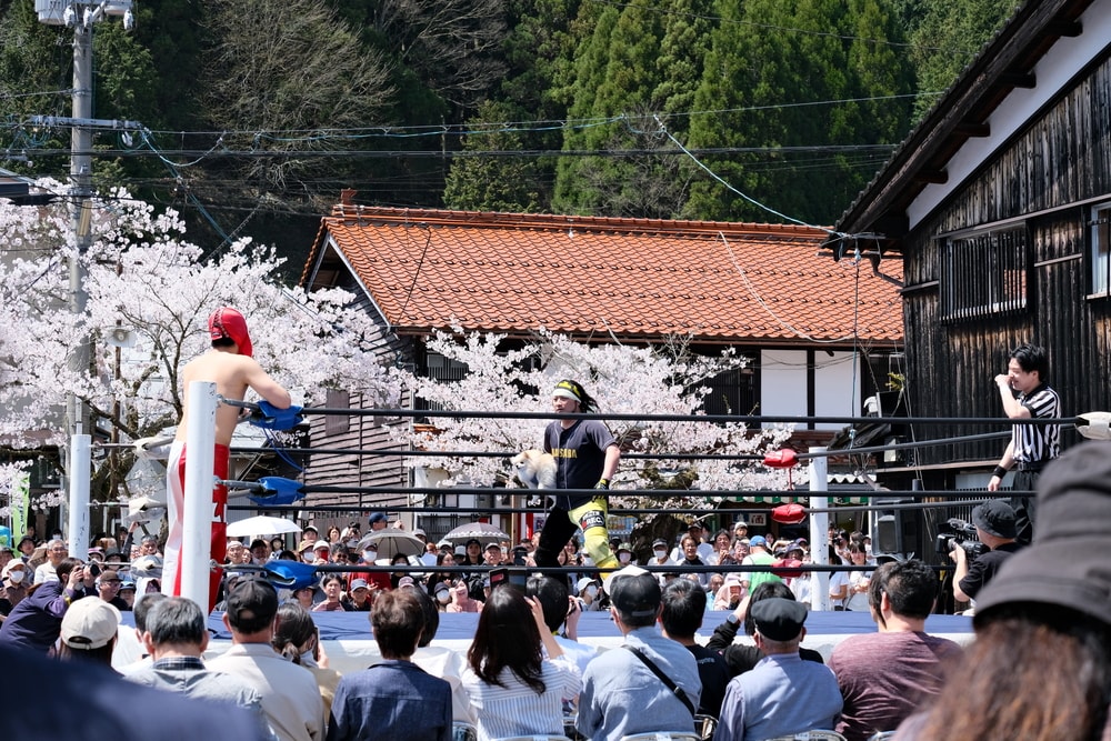 がいせん桜プロレスが本当に目指しているのは、桜が咲くその一日を「楽しかった思い出」で終わらせないことです。桜に包まれる中で交わされた歓声、知らない者同士が同じ瞬間に声を上げ、心を震わせた記憶を、この村に、この時代に、確かに刻みたい。