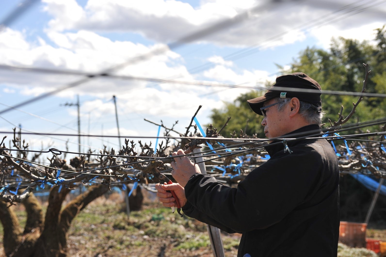 果樹農家としてこの地域で暮らす中でたどり着いた答えが、ワイン用葡萄の栽培でした。梨を主体としてきた畑は栽培用の棚と呼ばれる支柱やワイヤーが残されるため、同じように棚栽培が可能な葡萄は、棚を撤去し廃棄することなく活用できることから、この地域にとって新しい農業としての可能性が高く、後継者のいない畑がそのままの形で、新しい挑戦を可能にできると、大きな光を与えてくれたのです。そして私たちは2023年、高崎市で初めてとなるワイナリーを立ち上げました。多額の資金を必要とするワイナリーは、資金調達の年齢制限が迫ってきた私たちにとって、最大のターニングポイントであり、覚悟をもって選んだ道です。