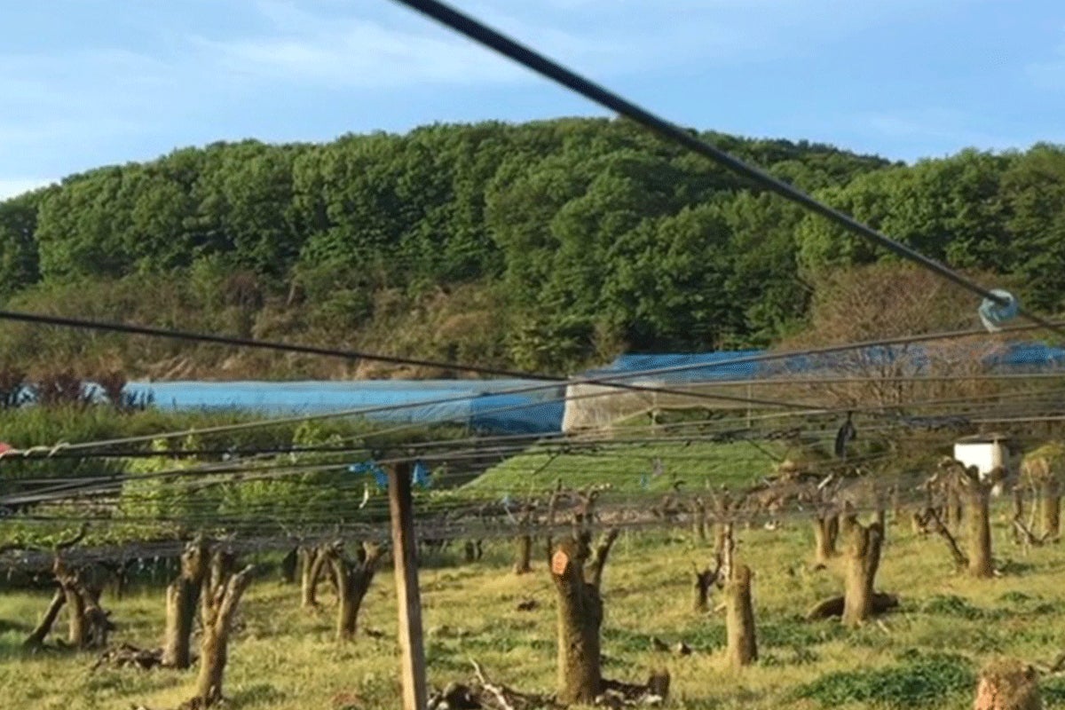 梨栽培で使っていた栽培棚(支柱・ワイヤー)を活用し、葡萄づくりに挑戦