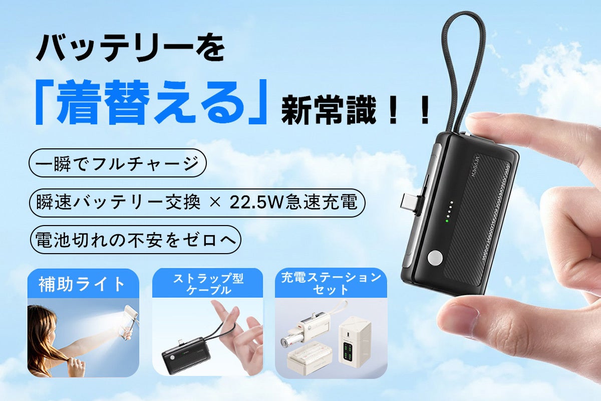 充電は「待つ」から「差し替える」時代へ。ケーブル不要、ワンタッチで即フル稼働。旅行もイベントも、電池切れの不安からあなたを解放します。