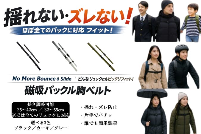 揺れない・ズレない。後付けできる磁吸バックル胸ベルト・2本セット