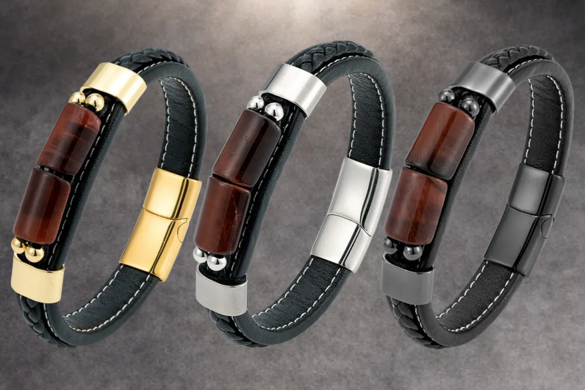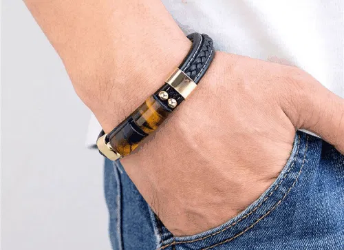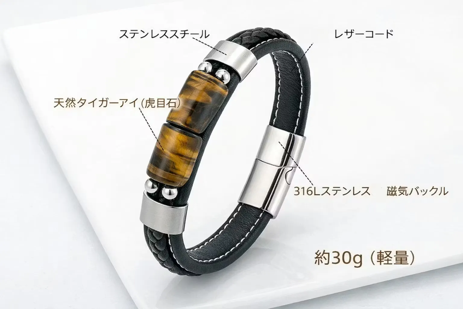 合皮+ステンレス+タイガーアイ