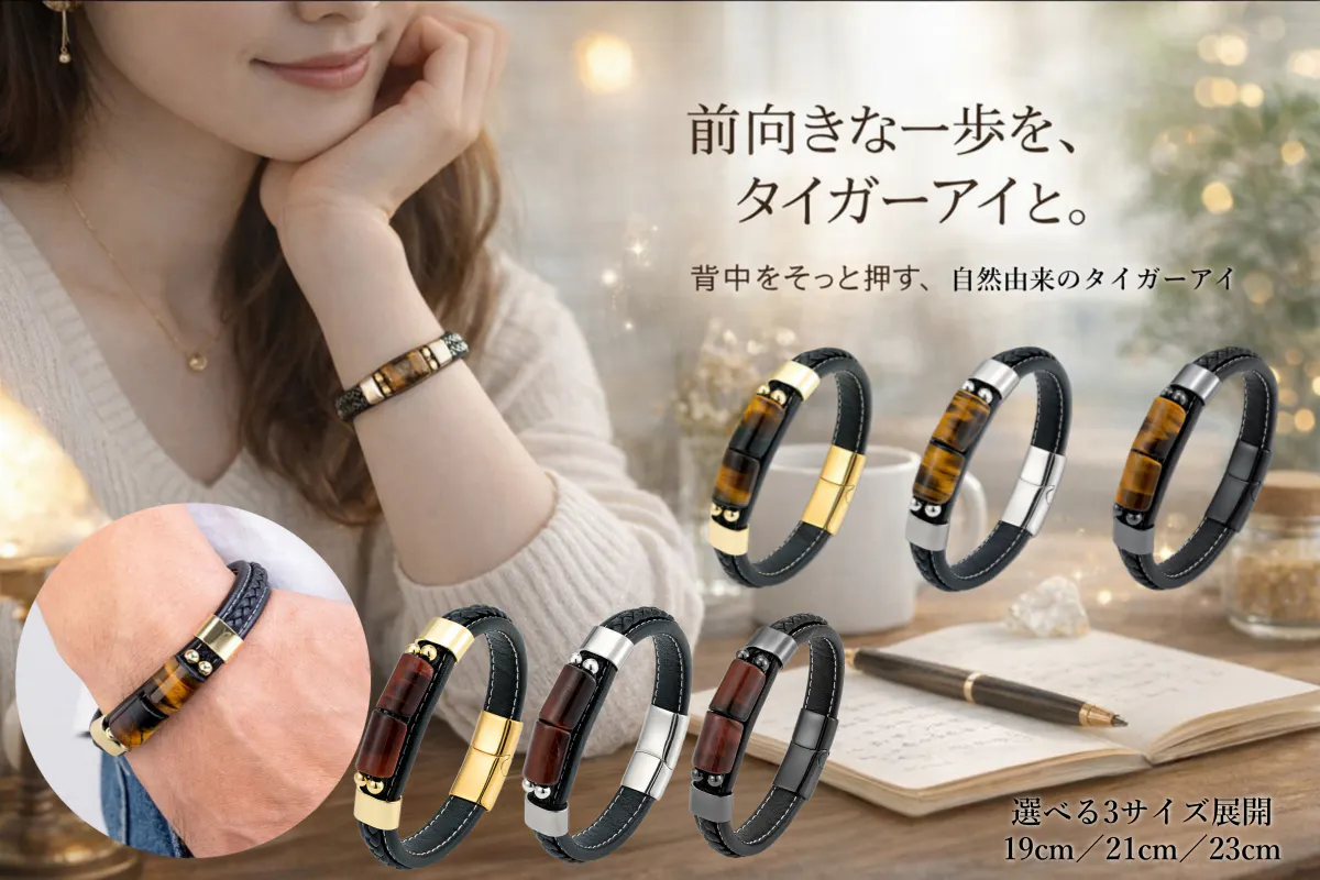 新色解禁のお知らせ!!身につけるだけで、気持ちが前を向く。 虎目石×革の大人の開運ブレスレット