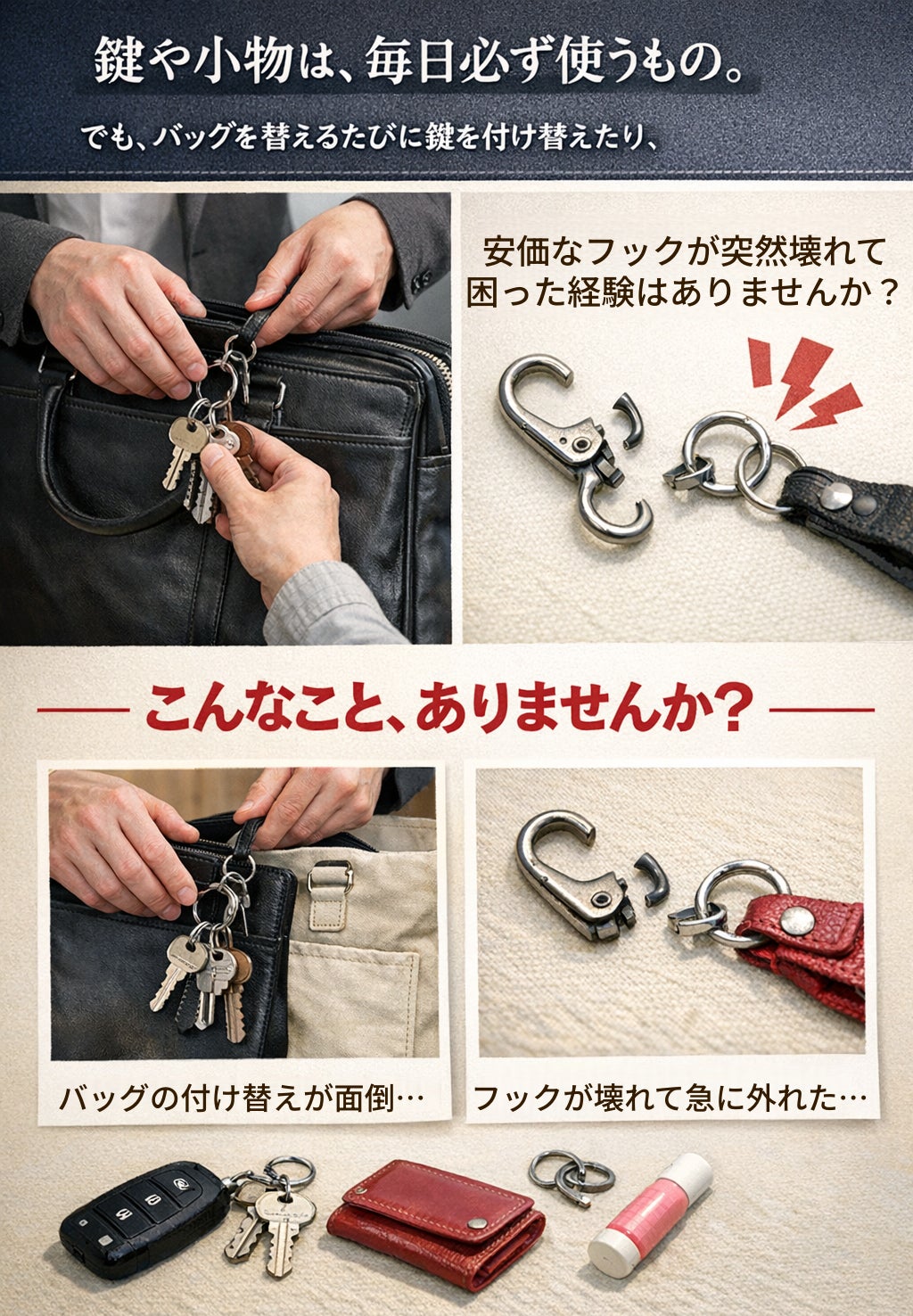 【残り1日】最後のお願い|この1日で結果が変わります★鍵もバッグも、迷わない。付け替えストレスを減らす回転フックセット(4・6点)