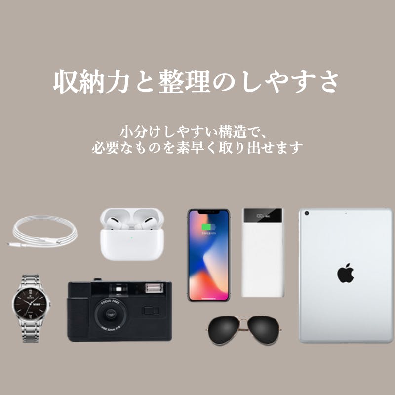 バッグの中で物が迷子にならないよう、内部には仕分け用ポケットを配置。