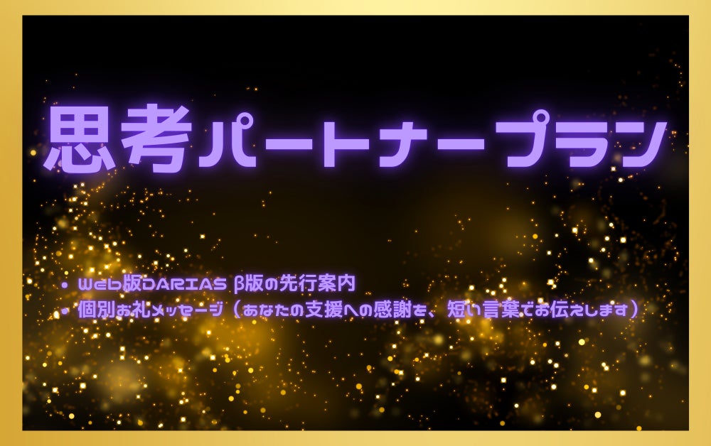 このプロジェクトを初期から支えてくださった証として、DARIASの中にあなたの存在を残します。支援してくださる方は、全員特別な存在です。