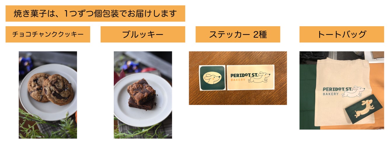私たちペリドのお菓子、そしてクラファン限定のグッズもリターンとして提供予定です。