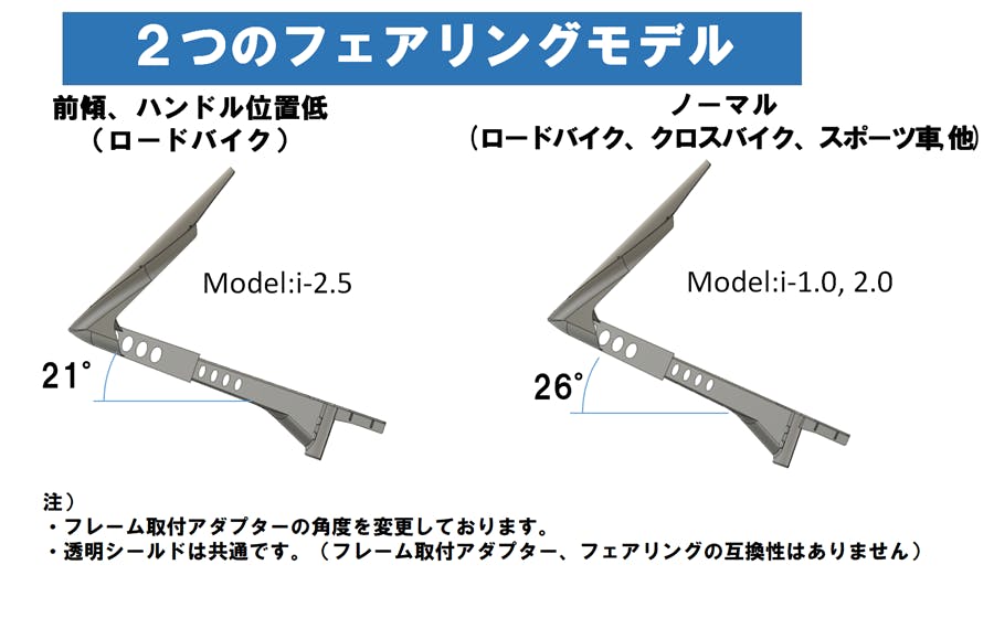 デザインされています。 幅はハンドルより小さく、取付けた時にフェアリングの先端は前輪よりも前に出ません。