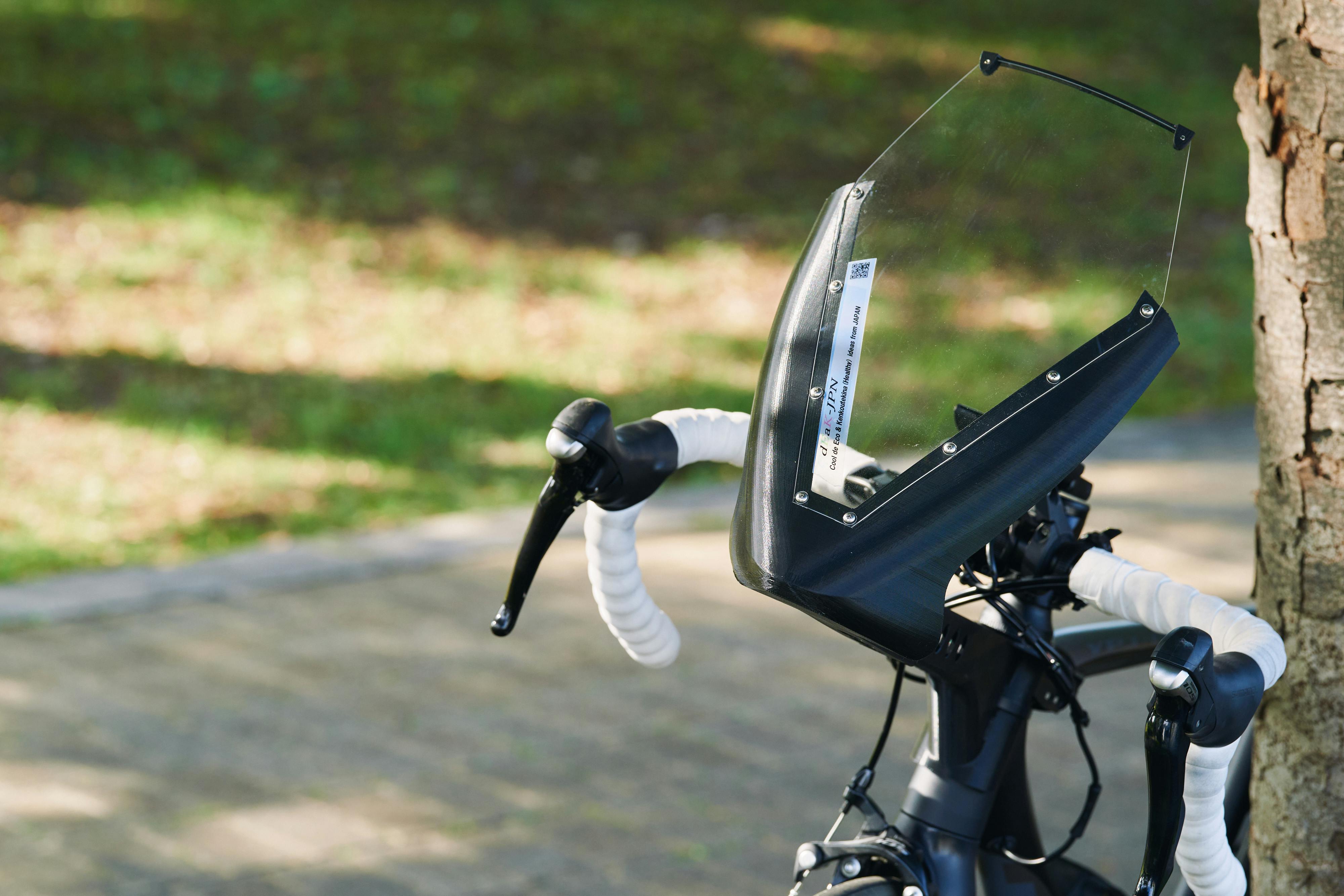 向かい風の抵抗を軽くし、寒さから体を守る、そんなシンプルで実用的な器具です。複雑な構造ではなく、自転車に後付けできる設計にしました。専門知識がなくても、誰もが簡単に装着できることを大切にしています。