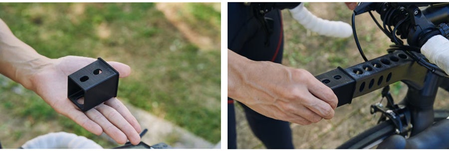 ライトの取付場所に頭を悩ます必要はありません! アダプターの下部に簡単にライトを取付可能な「ホルダー」を付属します!これで夜間走行も安全にライドを楽しむことができます。