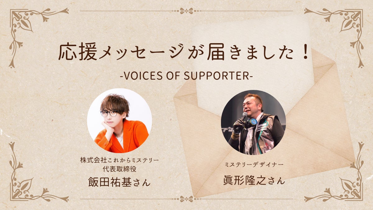2026/04/09 20:00こんにちは、為房です!いよいよ!いよいよ5月3日のグランドオープンに向けて、オープニング期間5月3日~10日の参加ご予約の受付が開始しております!何度でも遊べるストプレ『星詠みの標』。WorLd Holicの新作多人数ストプレ『REMNANT』。まだ空いてる日もありますので、ぜひ皆様のご予約おまちしております!そして現在、店舗の内装がまさに完成に近づいております!先日、支援者様限定の活動報告で、一部その様子も公開されております。不思議な森の遺跡の空間をぜひ覗き込んでくださいね!さて、本日もいただいた応援メッセージを新たにご紹介したいと思います!!============================================================眞形隆之さんミステリーデザイナーAGATAさんを心から応援しています。私がかつてマーダーミステリーのテレビ番組を企画した際、真っ先に台本をお願いしたのがAGATAさんでした。きっかけは、「遠き明日への子守唄」を遊んだことです。あの作品の衝撃は今でも忘れられません。物語の完成度、感情を揺さぶる展開、そして体験としての面白さ。そのすべてが圧倒的でした。脚本家であり、演者であり、演奏家でもある。その多才ぶりには本当に驚かされます。AGATAさんは、物語を「読むもの」ではなく、「体験するもの」へと変える力を持ったクリエイターです。これまで数多くの作品を生み出し、多くの人に忘れられない体験と感動を届けてきました。そして今回、ついに店舗を構えるという新しい挑戦をされると聞き、期待せずにはいられません。きっと、ここからまたとんでもない物語が生まれていくはずです。AGATAワールドは、これからさらに広がっていくでしょう。これは単なるお店ではなく、新しい物語が生まれる場所になると思います。支援する価値があることは明白です。AGATAワールドを体験しないという選択肢はありません。============================================================飯田祐基さん株式会社これからミステリー 代表取締役ストーリープレイングシアター、ついに始まるんですね。おめでとうございます!正直、最初に話を聞いたとき「これは絶対来る」と思いました。エンタメの新しい形を、ちゃんと”体験”として届けようとしている熱量が、会話の端々からびんびん伝わってきました。本物の夢って、人を動かすんですよね。またAGATAさんの作品は僕のマーダーミステリーにハマったキッカケの一つでもあります。彼女が作る作品は、とても暖かくきれいで、とても尊敬してます。舞台の演出をお願いしたときは、とても細部に拘りお客さんに対してすごく誠実で、感動しました。一人のお客さんとして、オープンを心から楽しみにしています。絶対遊びに行きます!============================================================眞形さんは、斑目瑞男の事件簿のドラマ制作で大変お世話になりました。あの時いいものを作るためにお互いぶつかり合って妥協しないでいられた時間が、私をここまで連れてきてきた思っています!(AGATA)飯田さんもマダミスの舞台作ったり、一緒に大変な思いをしてきた仲間であり、経営の大先輩です。たくさんの機会をくれた方でもあります。ありがとうざいます!またぜひ一緒におもろい事しましょう!(AGATA)お店はそろそろ内装も仕上がってきています。少しずつご紹介させていただきますのでお楽しみに!! もっと見る