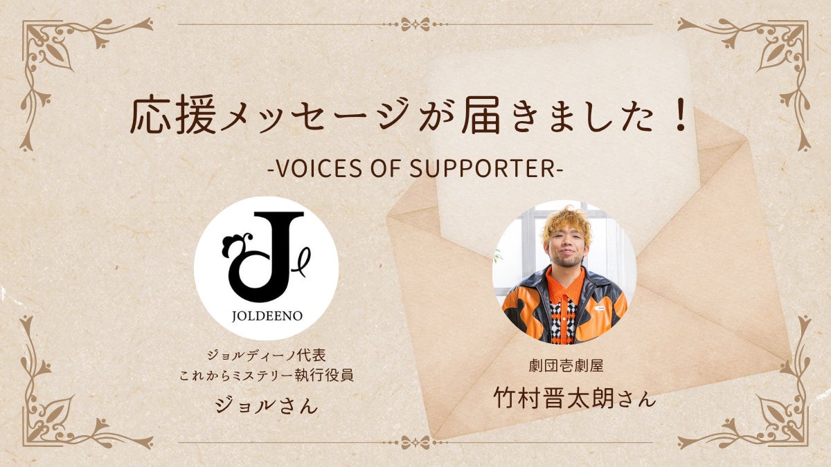 2026/04/16 22:27こんにちは、為房です!3月から始まりましたストーリープレイングシアターのクラウドファンディングも、残すところあと14日!!2週間となりました。なんとなんと!先日1100%を突破しました!ご支援誠にありがとうございます。こうなってくると見えてくるのは新たなネクストゴール!ネクストゴール1200万円達成時は…「星詠みの標」キャラクター衣装を製作します!!体験時に皆さまに着用いただけるものをご用意※達成した場合、2026年夏頃から実装予定皆様に更なる没入空間を!ぜひ一緒にこのネクストゴールに走っていただけたらと思います。そして、先日活動報告にもあげさせていただいた、4階エリアのLEDパネル空間!こちらは、WorLd Holicの新作多人数ストプレ『REMNANT』で大活躍の予定です!更には過去作の多人数ストプレでも…?こちらは先々の貸切のご予約なども承っておりますので、ぜひティザーサイトからお問合せください!stpl.jp/teaser/3階の不思議な森の遺跡の空間をフルで味合うなら、何度でも遊べるストプレ『星詠みの標』もおすすめです!そしてそして!新たなリターン品も追加!【体験イベントチケット】森の中でユートとパーティ(8,000円)体験型エンタメクリエイター・ユートさんがお届けする、定員は10名・2日間限定の特別なパーティイベントです。イマーシブ・ラボさんにて、様々な体験型コンテンツを世に送り出しているユートさんのご紹介も追加いたしております!さて、それでは本日もいただいた応援メッセージを新たにご紹介したいと思います!!============================================================ジョルさんジョルディーノ代表/株式会社これからミステリー執行役員/マダミスギルド共同代表ストーリープレイングシアターがついにオープン!?内装・音響・照明すべてにこだわった、圧倒的ハイクオリティな空間になると聞いています。そんな挑戦を手がけるのは、マーダーミステリー黎明期から共に歩んできたAGATAさん。中国に行って最新エンタメに触れたり、一緒に作品づくりをしてきた仲だからこそ、今回の本気度が伝わってきます。AGATAさんは、夢に向かって一直線に突き進むまっすぐな人です。その姿勢は時に大胆で、でもだからこそ人の心を動かす力がある。僕はそんなAGATAさんを心から尊敬していますし、大好きなのです。そんなAGATAさんが本気で作る場所で、最高の物語を体験してみたいと思いませんか?僕は体験したいです。この挑戦、心から応援しています。これからも切磋琢磨しながら一緒に盛り上げていきましょー!============================================================竹村晋太朗さん劇団壱劇屋日々、世界中の表現は変化しつつ、、、日々、演劇界の表現は変化しつつ、、、そして、お客様の演劇や物語への参加も日々変化しております。作品を観るという事から、さらに作品へ没入し、さらに自身がその物語を牽引したり、物語に巻き込まれたり、物語に飲み込まれたり。この「たり」という事は無限の可能性やワクワクが内包されています。結果では無く過程を体験できるのは、これからの演劇や体験を確変するものだと思います。ものすごく楽しみですよね。ワクワクを生み出すのはもちろん企画者ですが。それを現実に向かわせる事ができるのも皆様であるこの企画を応援いたします。さぁ、東京の一角で無限の新たな体験をしましょう!============================================================ジョルさんは、お店経営としては大先輩!10月一緒に上海を旅したときにはお店を作る話もはじまってて、旅の道中もすごくたくさんのアドバイスをいただきました!この先も学ばせてもらいたいこともたくさんあるし、これからも仲良くしてほしいし一緒にがんばれたらうれしいです!(AGATA)竹村さんは、私が俳優としてお世話になったことがある劇団壱劇屋さんの脚本・演出家であり、殺陣師でもあり、素晴らしい俳優でもあります。日々変わり続ける表現、まさにそれを体現し続けている竹村さんからの応援、ありがとうございます!(為房) もっと見る支援者限定!設備先見せ