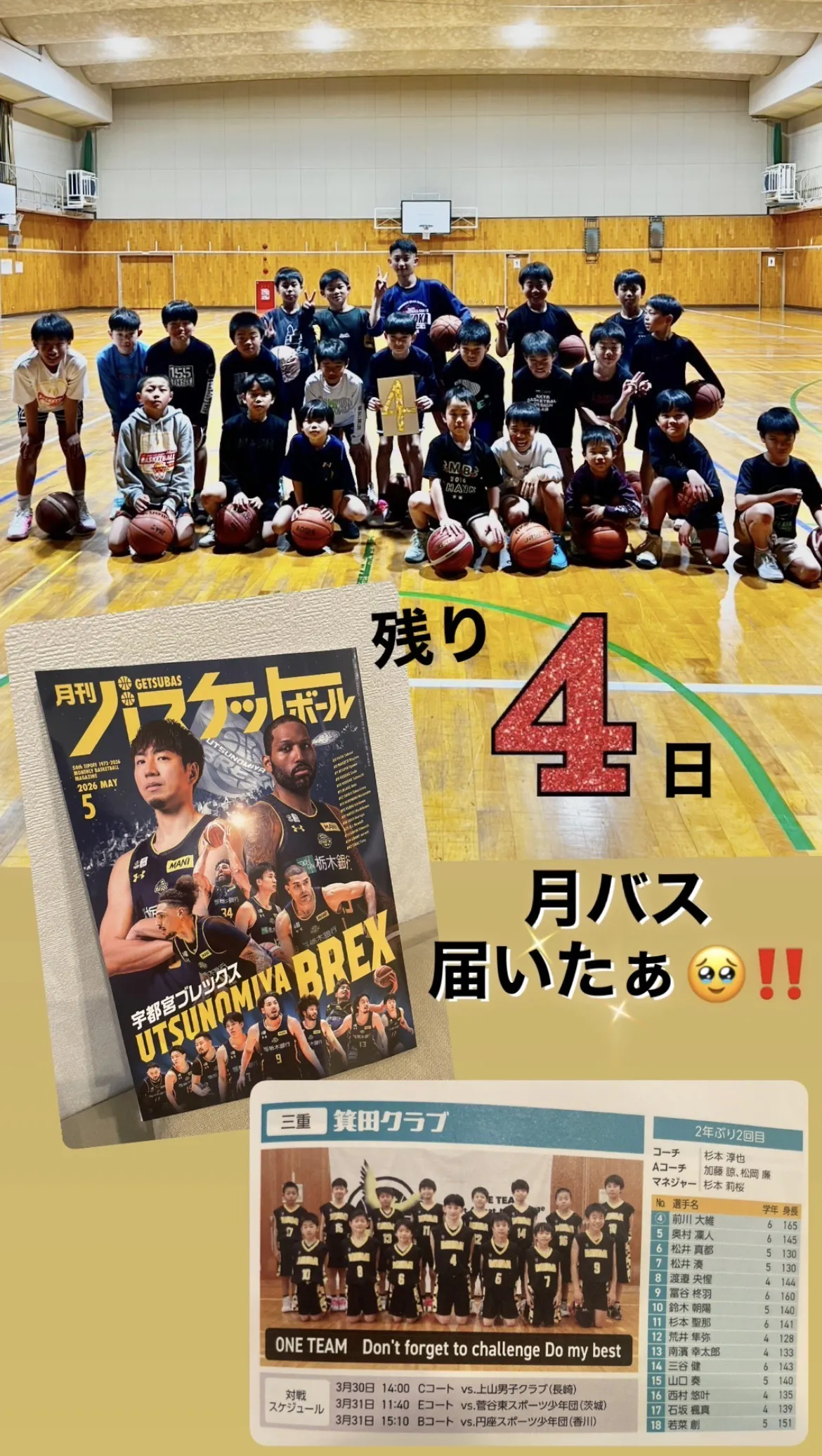 いつも箕田ミニバスケットボールクラブを応援いただきありがとうございます!!二日間の熱い熱い試合は終わりました悔しい、、やっぱり勝ちにこだわりたい勝って皆で喜びを分かち合いたい〜結果〜 1勝2敗勝った試合も最大12点離されていましたが、6年生の粘り強さが見られ2点差で勝利することができました。やっぱり全国には強いチームがたくさんいました 男女全チーム合わせても一番平均身長が低くくちびっこな箕田頑張りましたが全勝とはなりませんでした皆さんからの温かいご支援総勢80名 の方からご支援頂きました大変心から感謝しております!!全国から帰宅して翌日から新チームスタートですまた、この舞台に帰って来れるようにちびっこ箕田は駆け抜けます今後とも応援いただけると嬉しいです!!短い期間でしたが活動報告も見ていただきありがとうございました(^^)