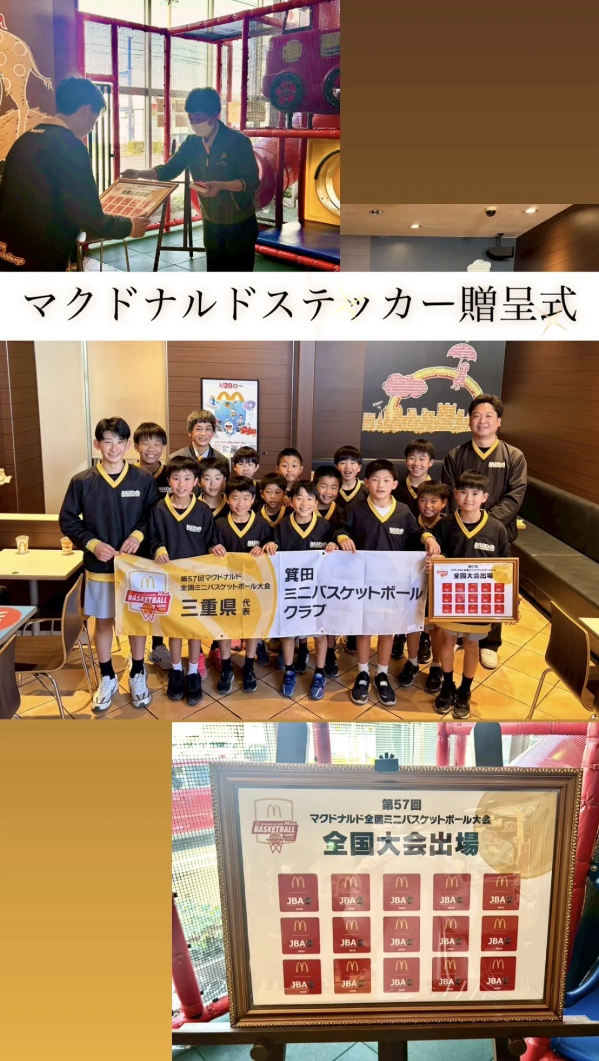 第57回マクドナルド全国ミニバスケットボール大会の特別協賛である、日本マクドナルド株式会社様から15名にステッカーの贈呈がありました。