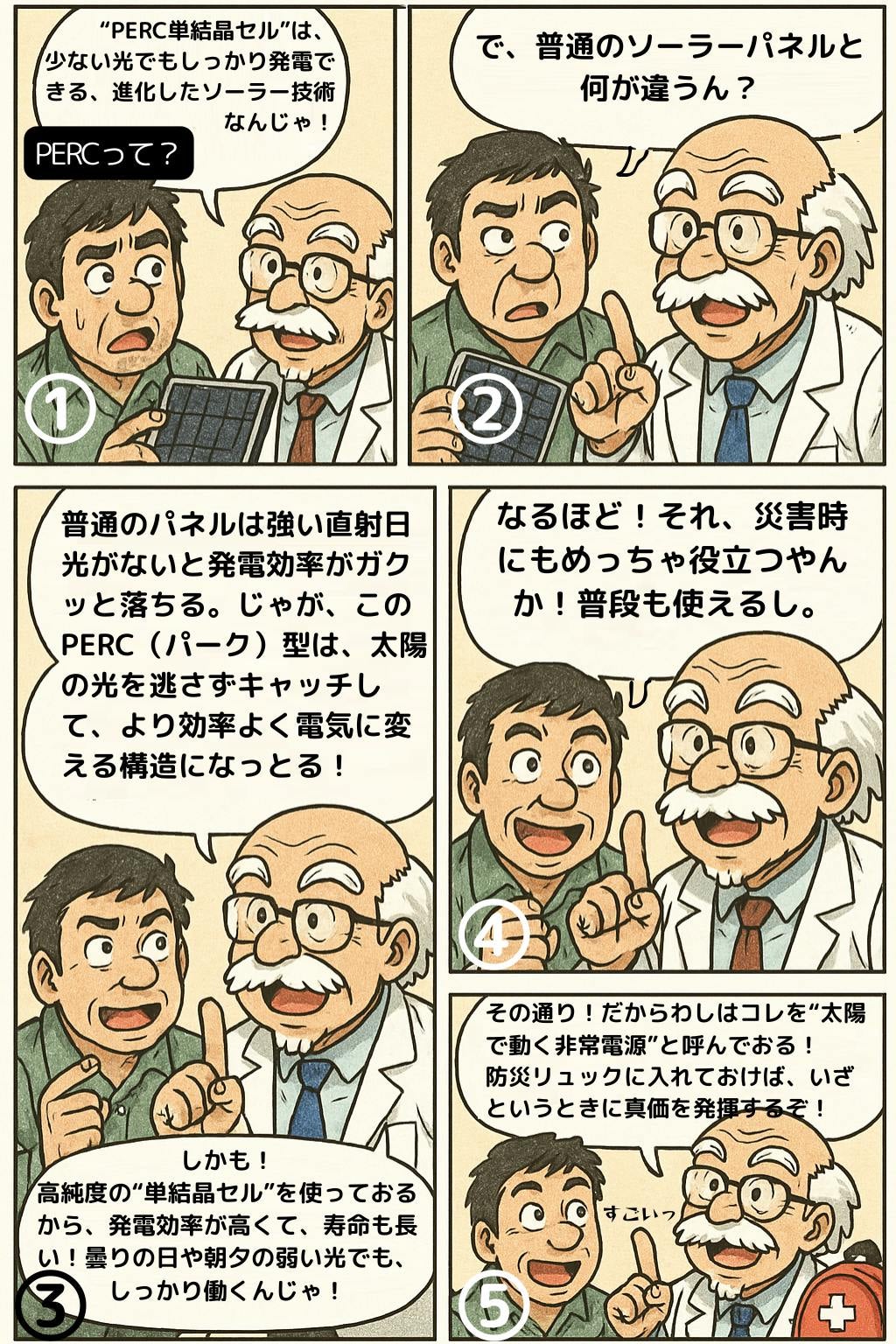 わずかな日差しも逃さず電力に変換。従来型より高い発電効率を誇るPERC単結晶セルを搭載し、曇り空や朝夕の弱い日差しでもしっかり充電可能。非常時でも「今すぐ電源がほしい」に応える、頼れる進化型ソーラーパネルです。