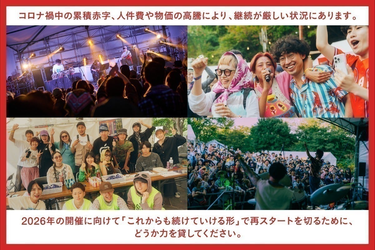 皆さまの応援を力に、2026年9月26日・27日、アルプス公園で最高のフェスを作ります。