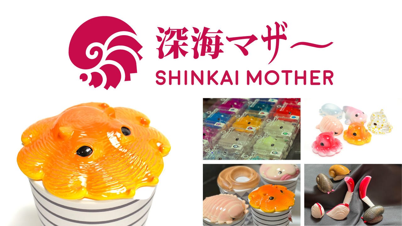 のちに「フカブカ」と呼ばれ、「フカメディア」のマスコット的存在となるキャラクターを産み出したのは深海生物をモチーフにしたインテリア雑貨を産む“深海の母”こと、「深海マザー」さん。ヒラリと腕をはためかせて着地したような姿でカップの上に鎮座する「カップメンダコシリーズ」などを展開。たびたびバズり散らかしている深海プロダクト界の雄です。