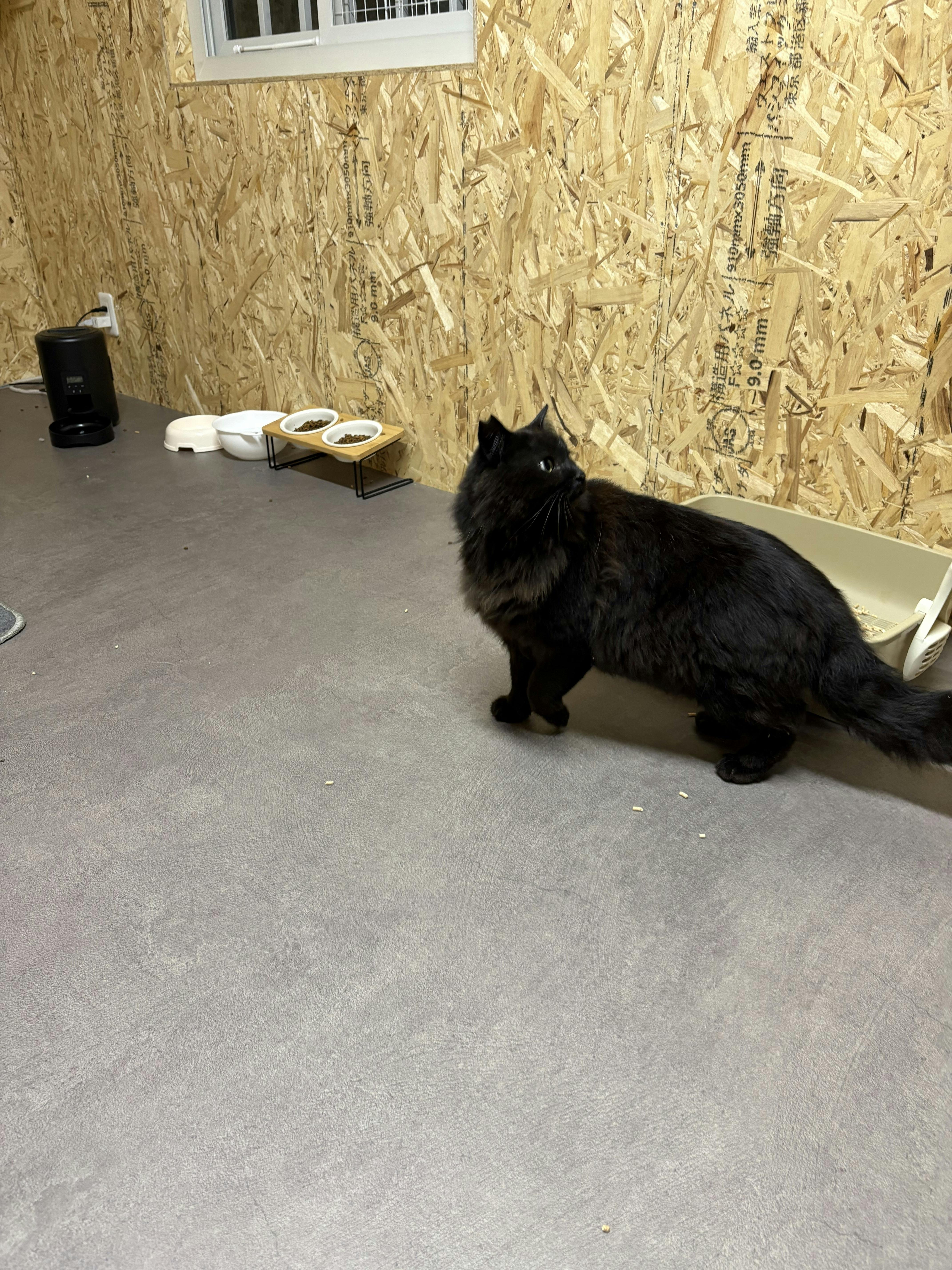 黒の長毛ちやんと、麦わらちやんは手術済みのため昨日の夜からコンテナハウスに入ってもらっています。あとの2匹は未手術のため今日手術終わったあとにコンテナハウスに入ってもらいます。