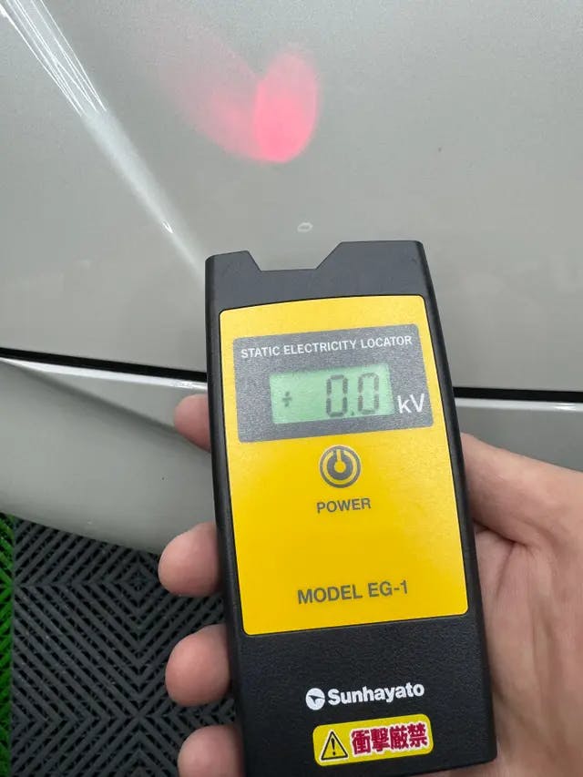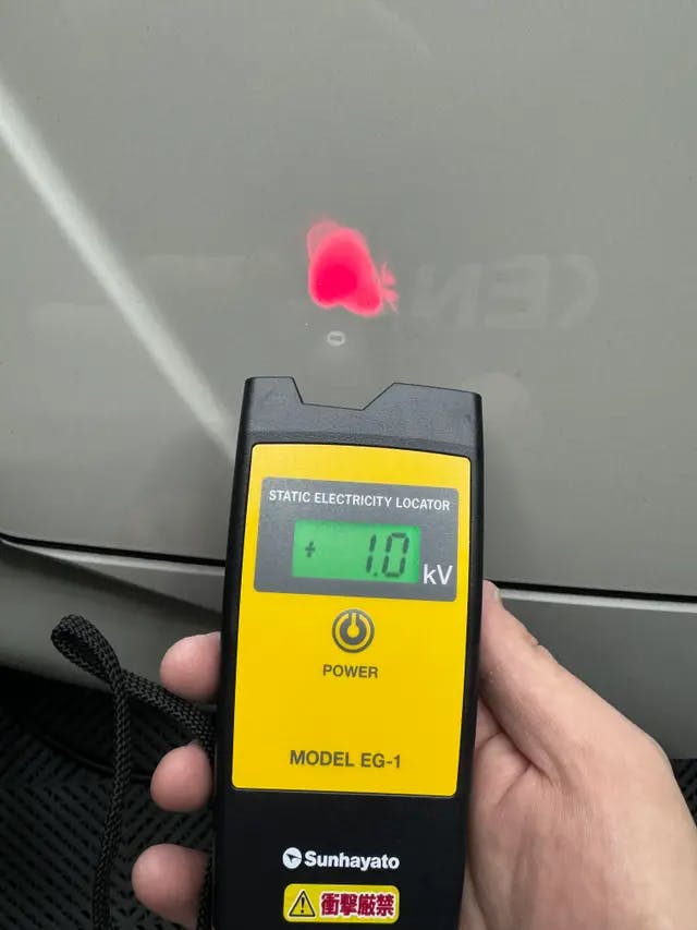 静電気チェッカーにて施工前と施工後のボンネットの静電気を計測してみました。