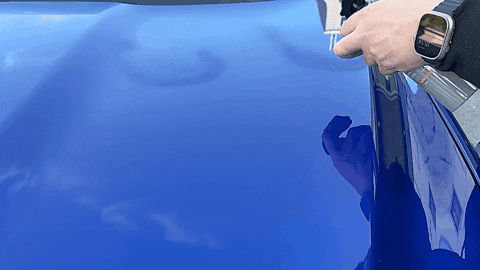 ①完全に車体が乾いた状態でスプレーを吹きかけ、水気がなくなるまでマイクロファイバークロスで拭きあげる